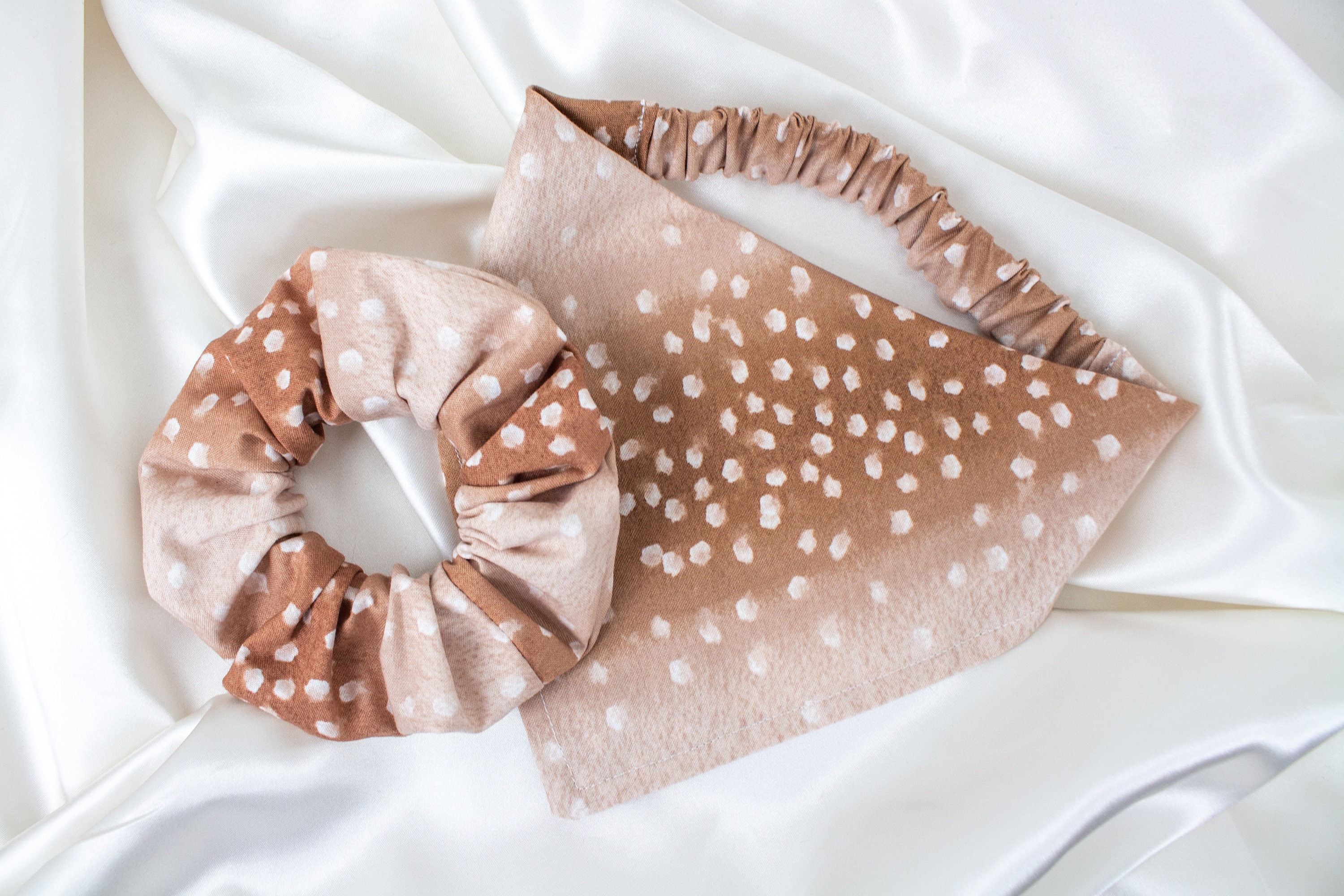 Matching Fawn Deer Print Dog Bandana and Hair Scrunchie Set, MATCH YOUR DOG! Scrunchies and Dog Scarf, Scrunchy Pet and Owner Set