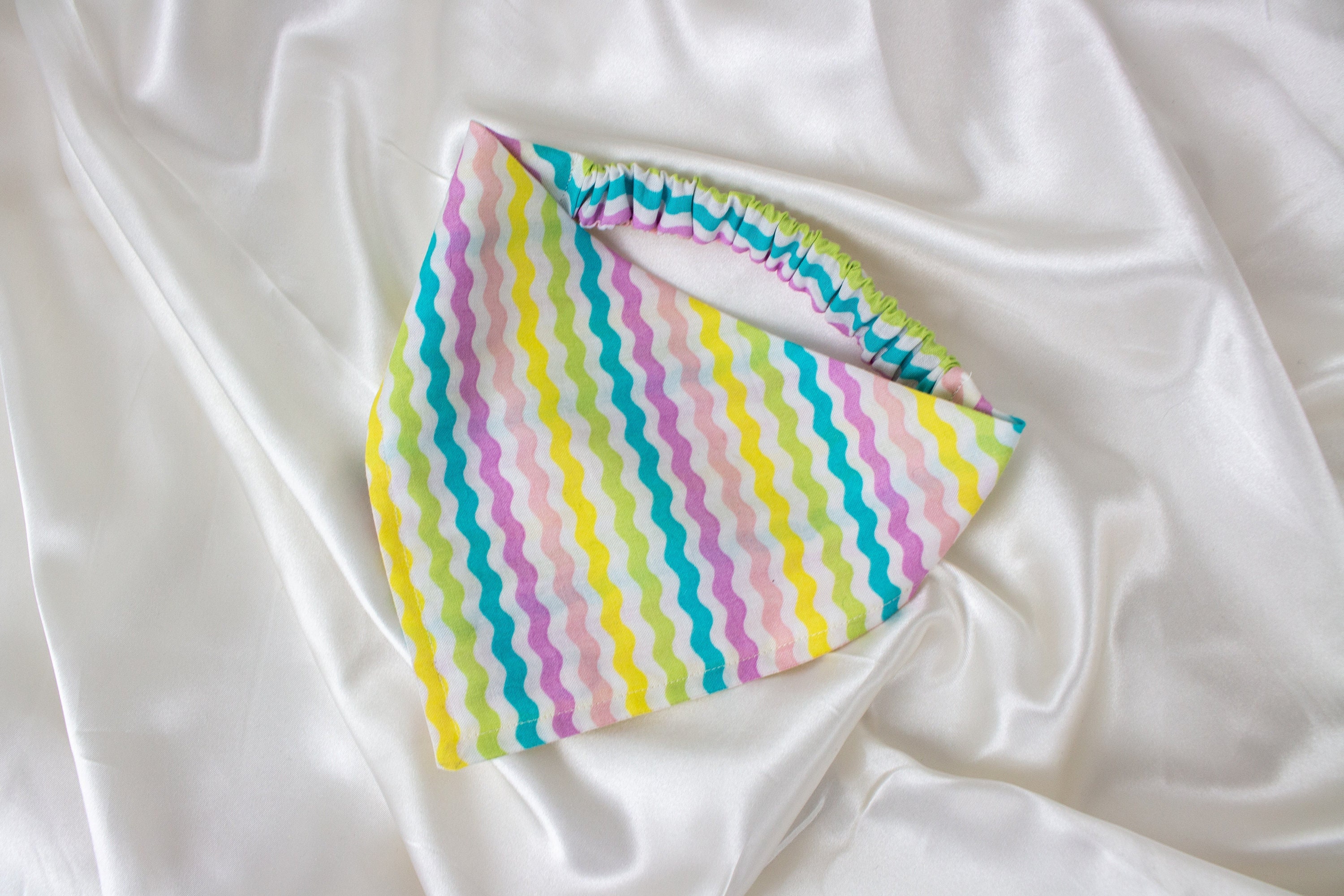 🥰This pet bandana is handmade from quality white fabric with a pattern of pastel Easter-themed stripes! It features an elastic strap to make it easier to get on and off your pet!