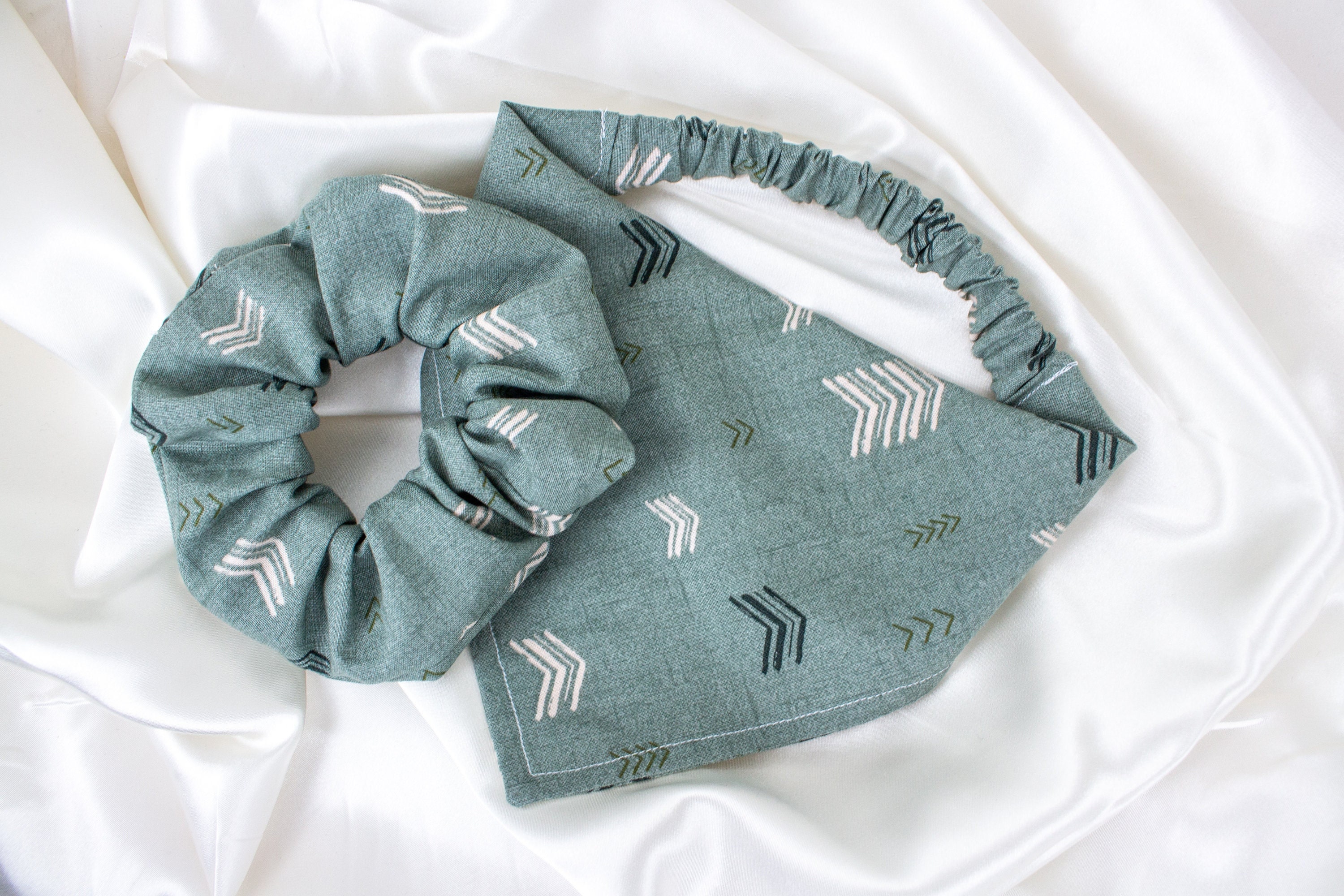 Matching Chevron Dog Bandana and Hair Scrunchy Set, MATCH YOUR DOG! Boho Scrunchie Pet and Owner Set, Scrunchies and Dog Scarf, Green