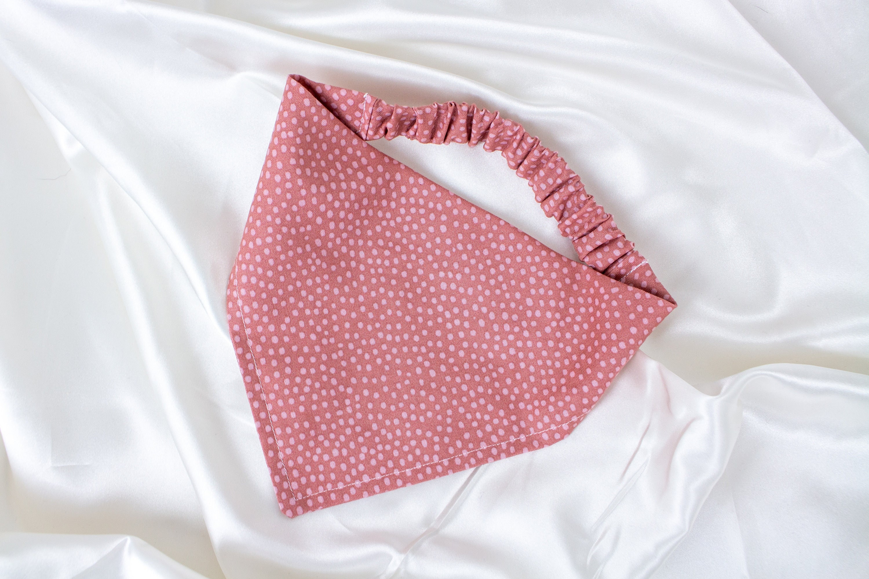🥰This pet bandana is handmade from quality fabric with a gorgeous mauve color and a pattern of subtle pink dots! It features an elastic strap to make it easier to get on and off your pet!
