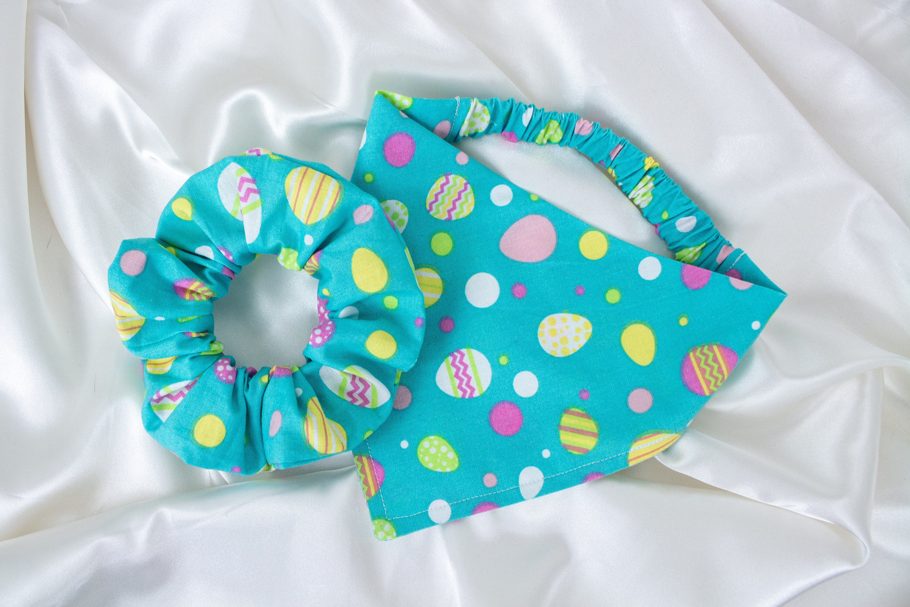 Matching Easter Eggs Dog Bandana and Hair Scrunchie Set, Spring, Easter Scrunchies Pet and Owner Set, Scrunchy and Dog Scarf, Match Your Dog