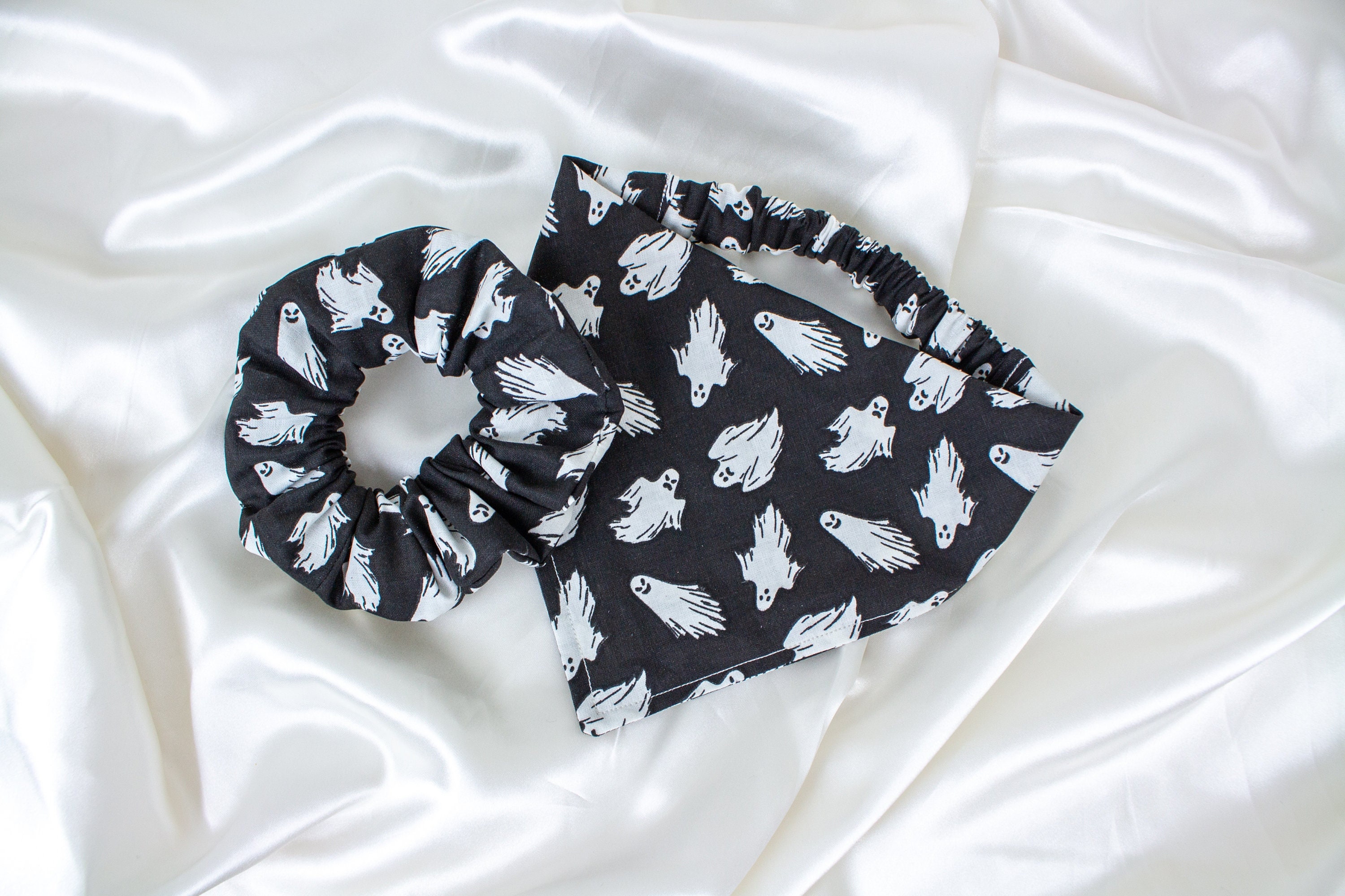 Matching Halloween Dog Bandana and Hair Scrunchie Set, Glow in the Dark, Spooky Ghost Scrunchies Pet and Owner Set, Scrunchy and Dog Scarf