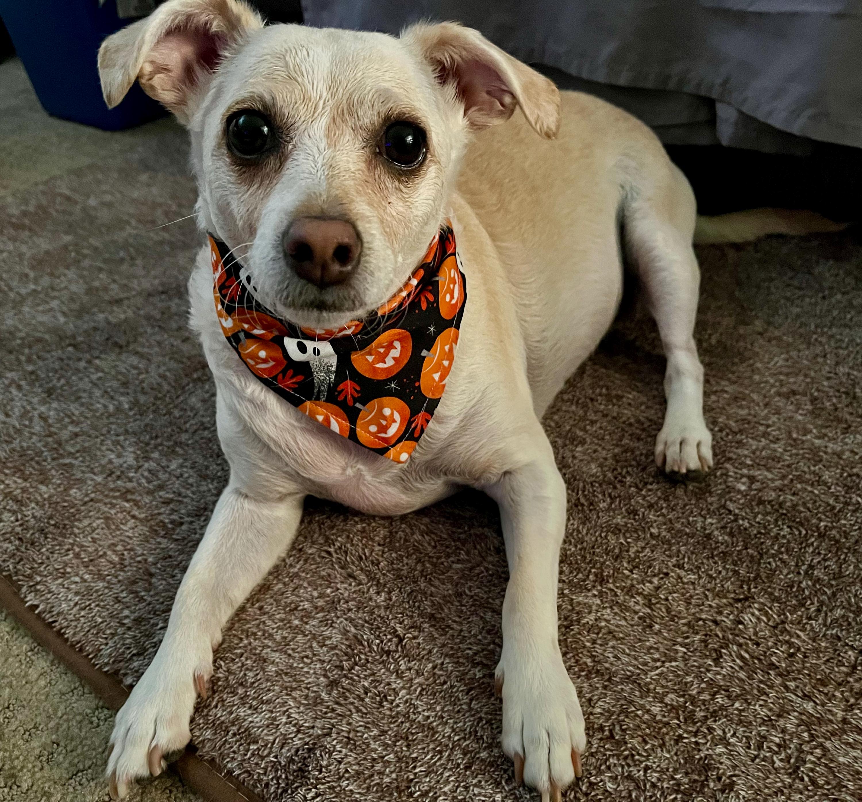Cute! Cute! Cute! My Gracie looks so adorable wearing her Halloween collar. She’s ready for Halloween!