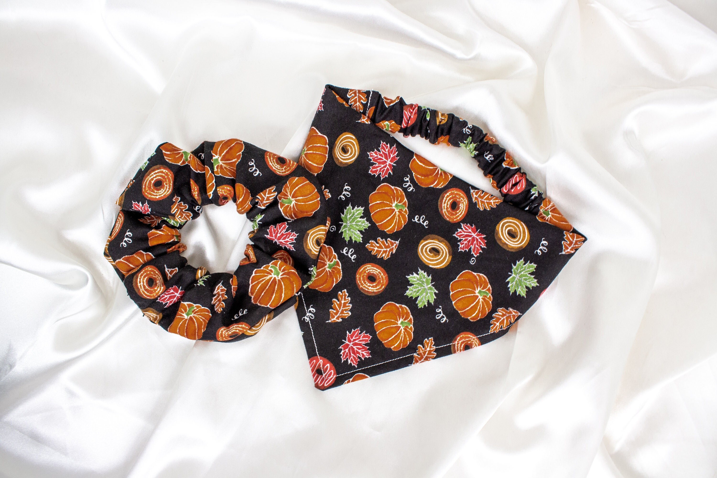 MATCH YOUR DOG! Matching Fall Pumpkin Dog Bandana and Hair Scrunchie Set, Autumn Scrunchy Pet and Owner Set, Scrunchies and Dog Scarf
