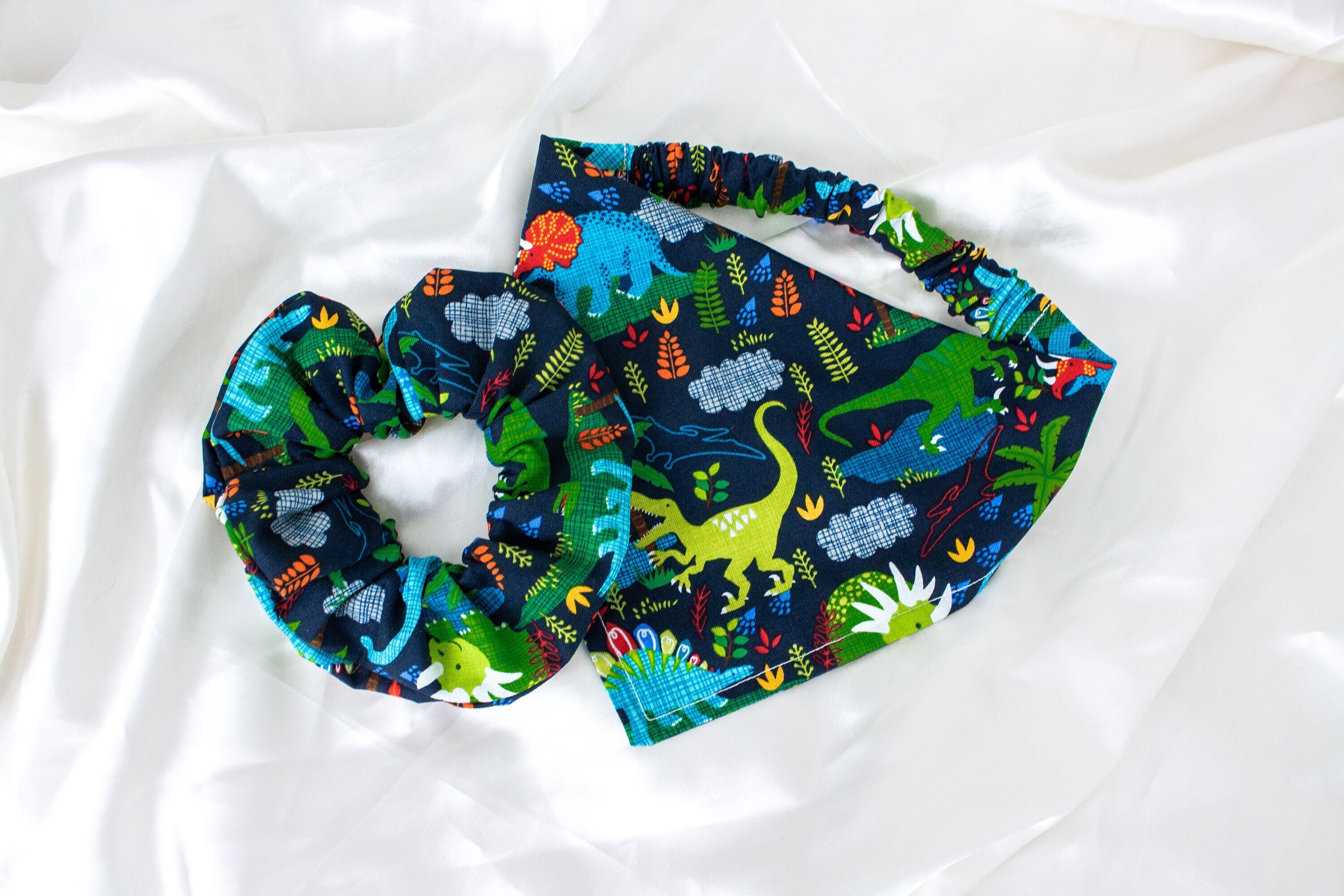 MATCH YOUR DOG! Matching Dog and Owner Dinosaur Dog Bandana and Hair Scrunchie Set, Dino Scrunchy and Dog Scarf, Cute Dog Accessories Boy