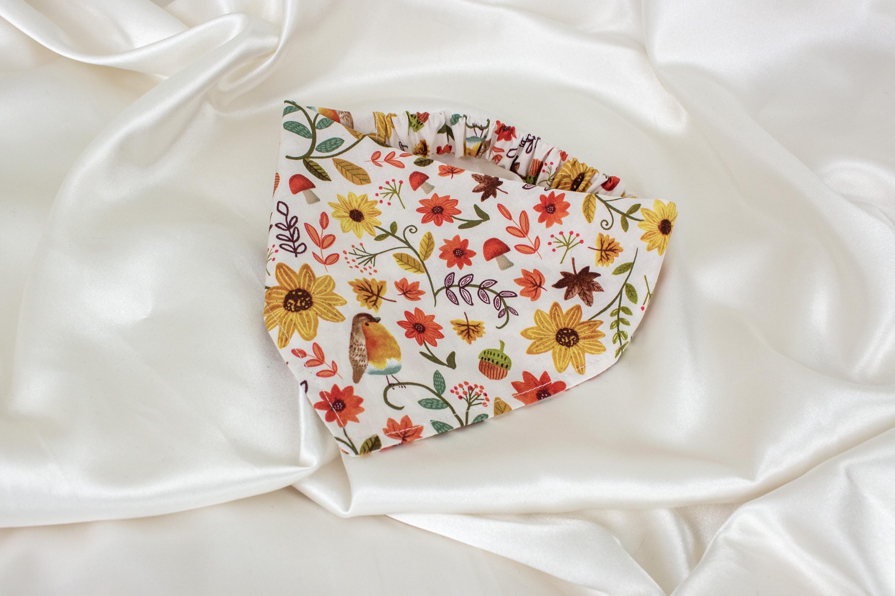 🥰This pet bandana is handmade from quality white fabric with a gorgeous, elegant floral design with mushrooms, acorns, and birds! This pattern is very gentle and simple. It features an elastic strap to make it easier to get on and off your pet!
