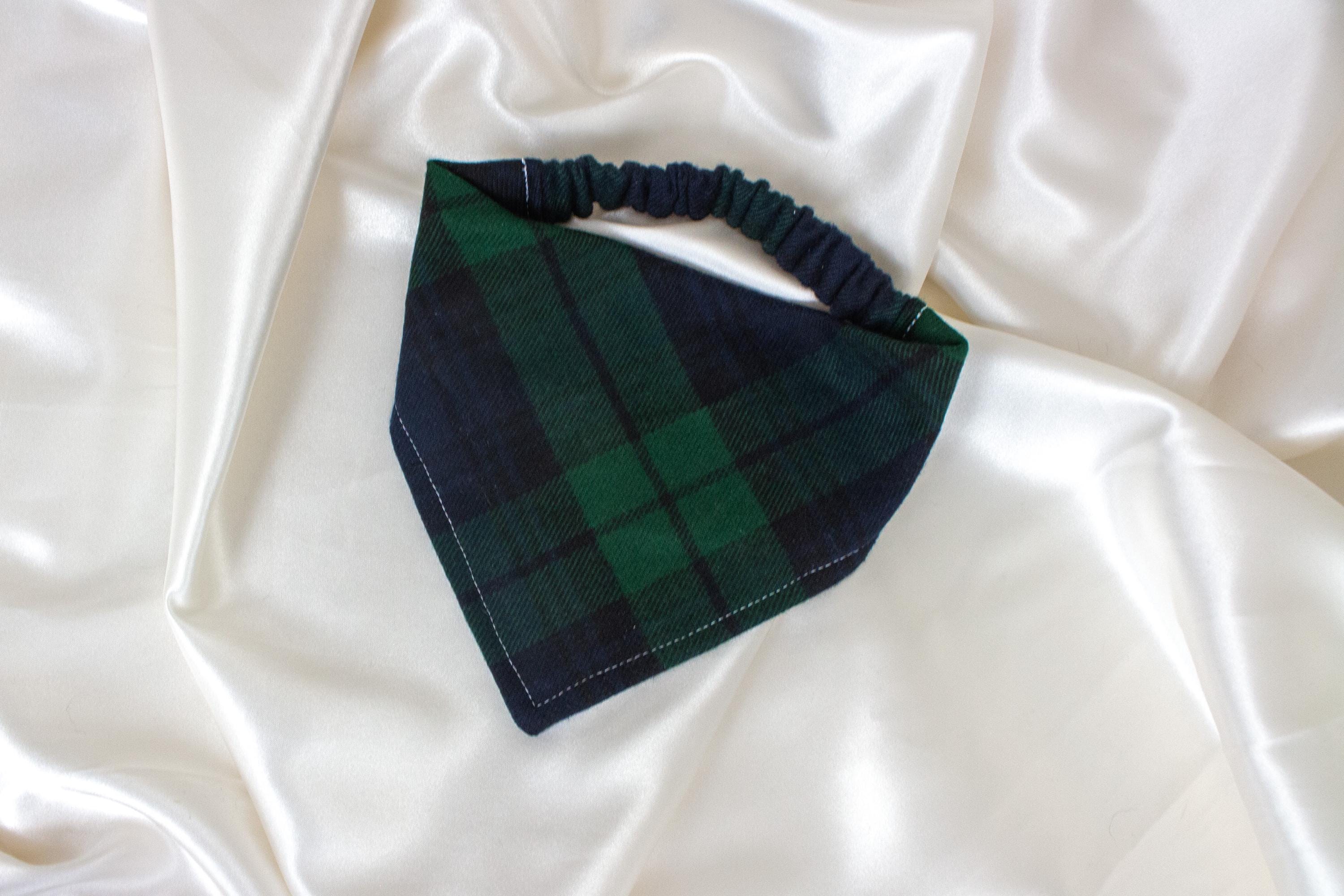 🥰This pet bandana is handmade from quality soft, cozy flannel fabric that is a rich, dark green color and has a plaid pattern! It features an elastic strap to make it easier to get on and off your pet!
