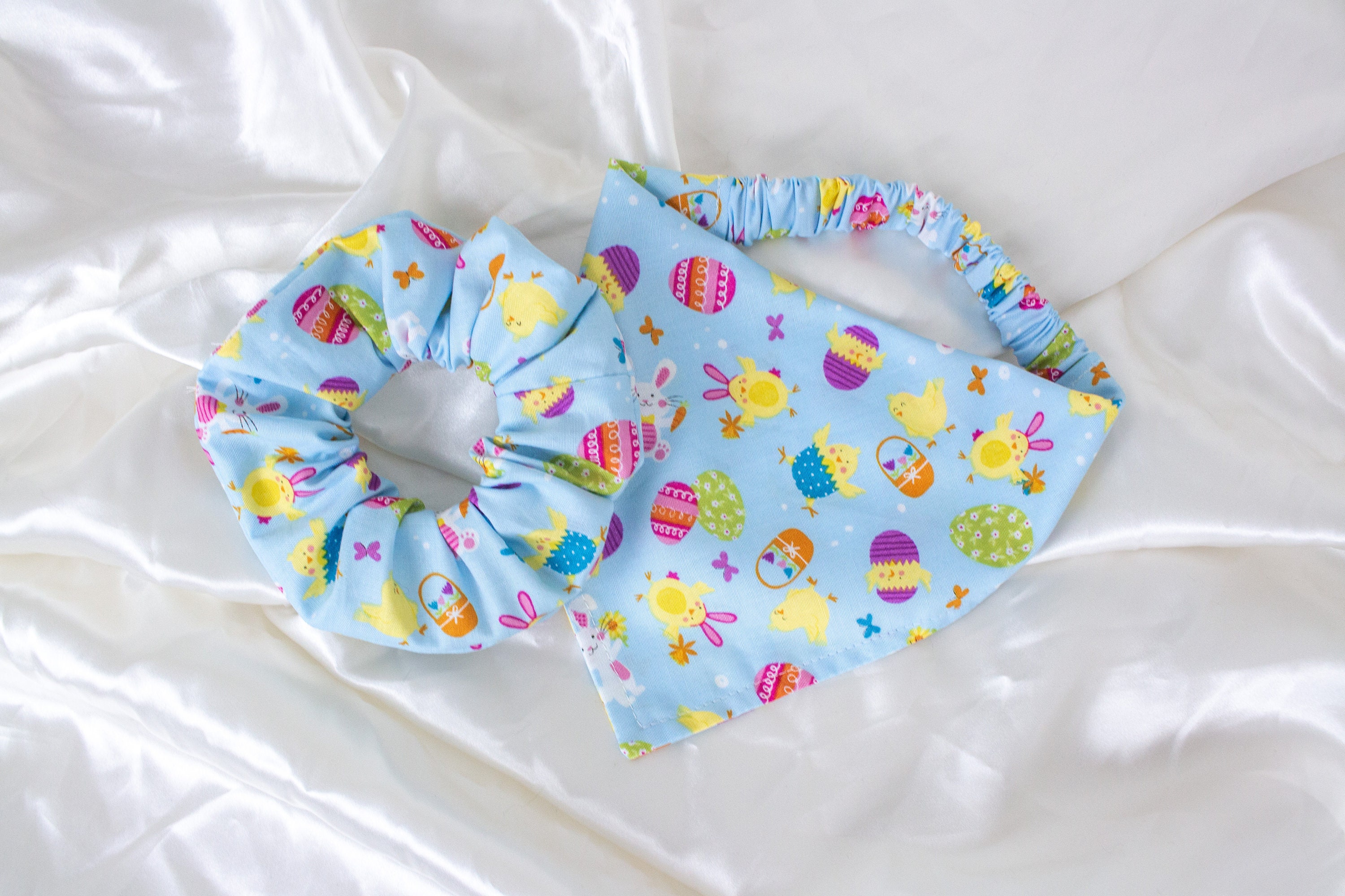 MATCHING PET and OWNER! Easter Eggs Slip On Dog Bandana and Hair Scrunchie Set, Easter Scrunchy and Dog Scarf for Spring
