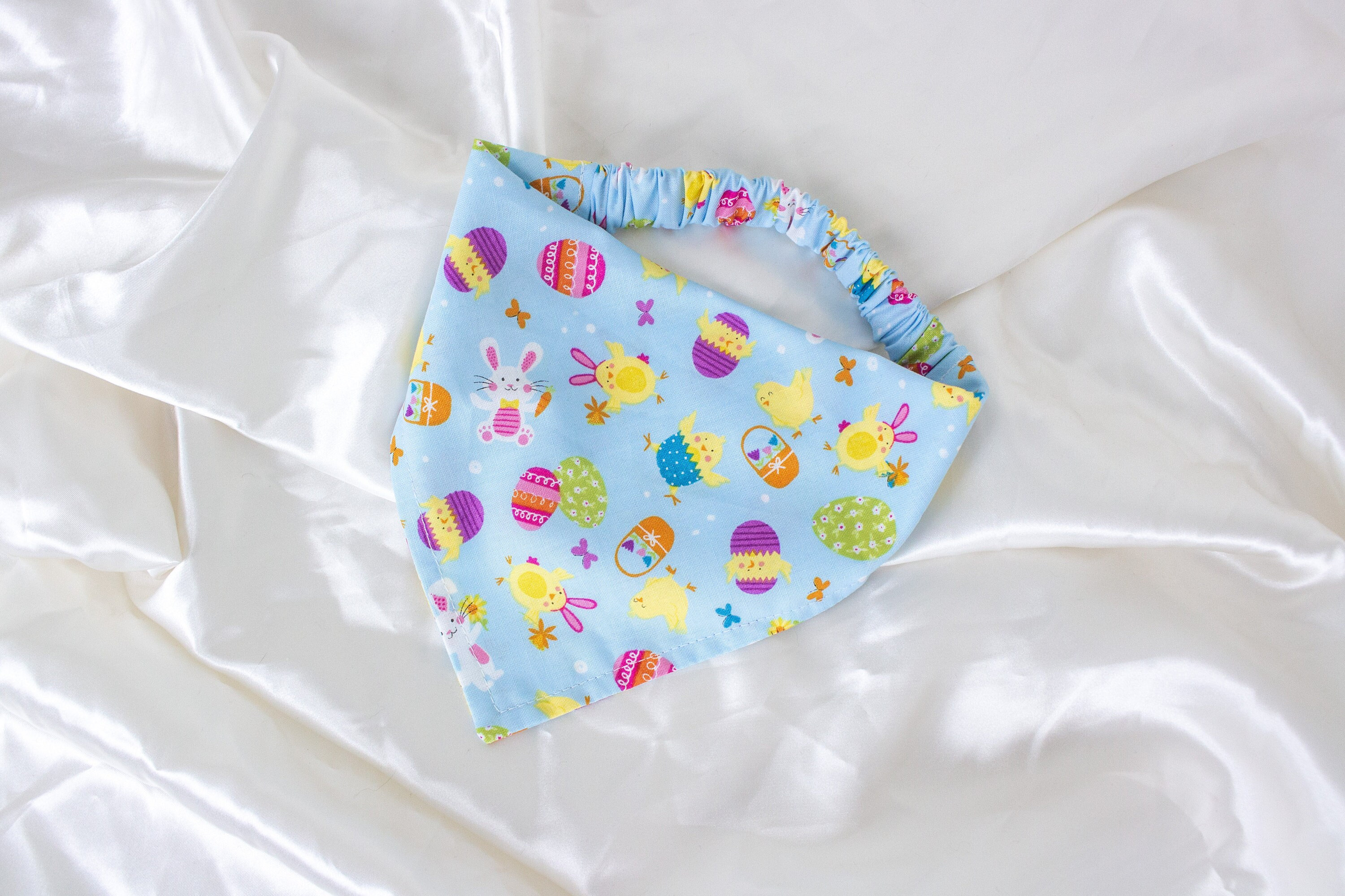 🥰This pet bandana is handmade from quality blue fabric with cute chicks and colorful Easter eggs! It features an elastic strap to make it easier to get on and off your pet!