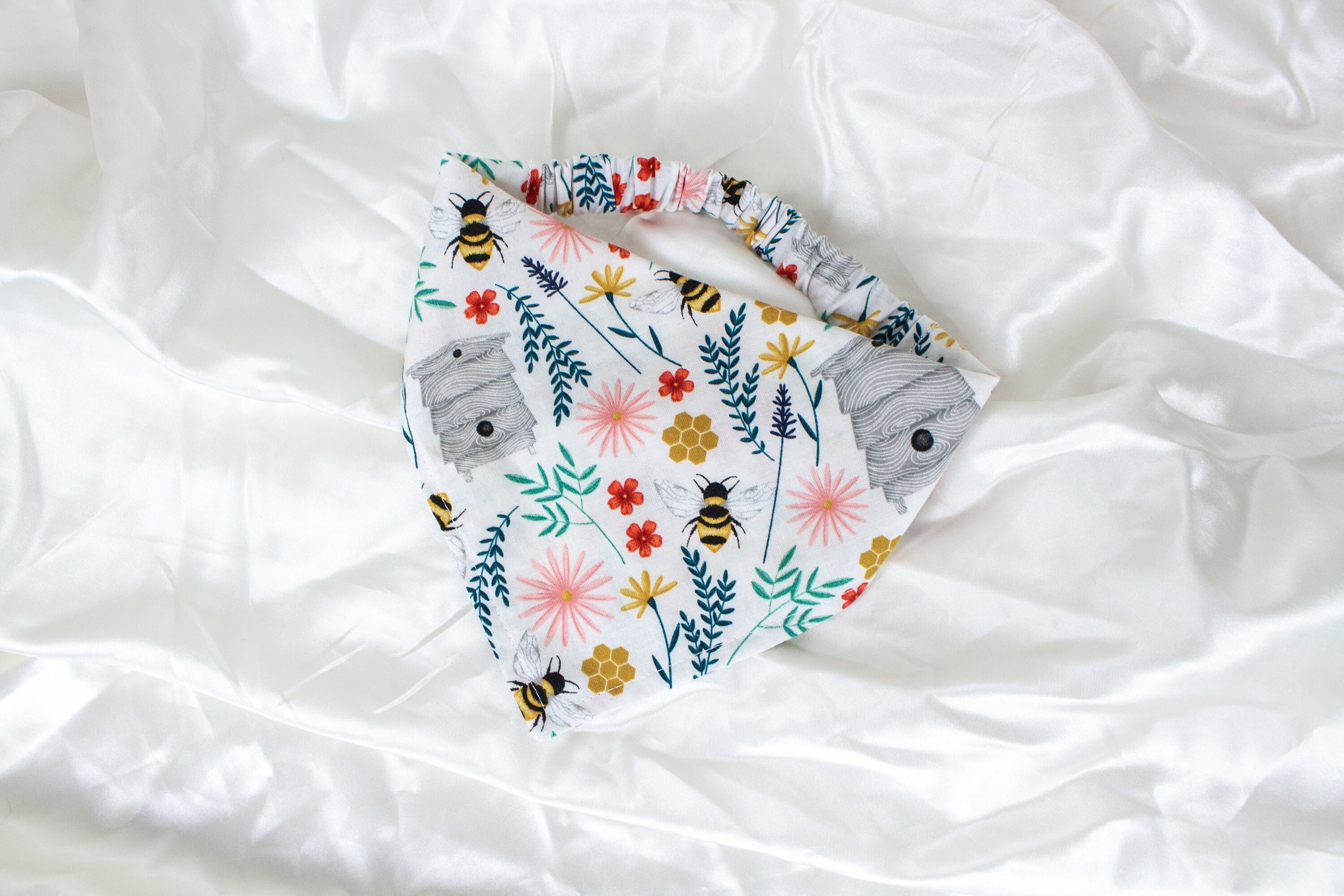 Floral Bee Dog Bandana, Bees & Flowers Dog Bandana, White Dog Scarf, Bumblebee Pet Handkerchief