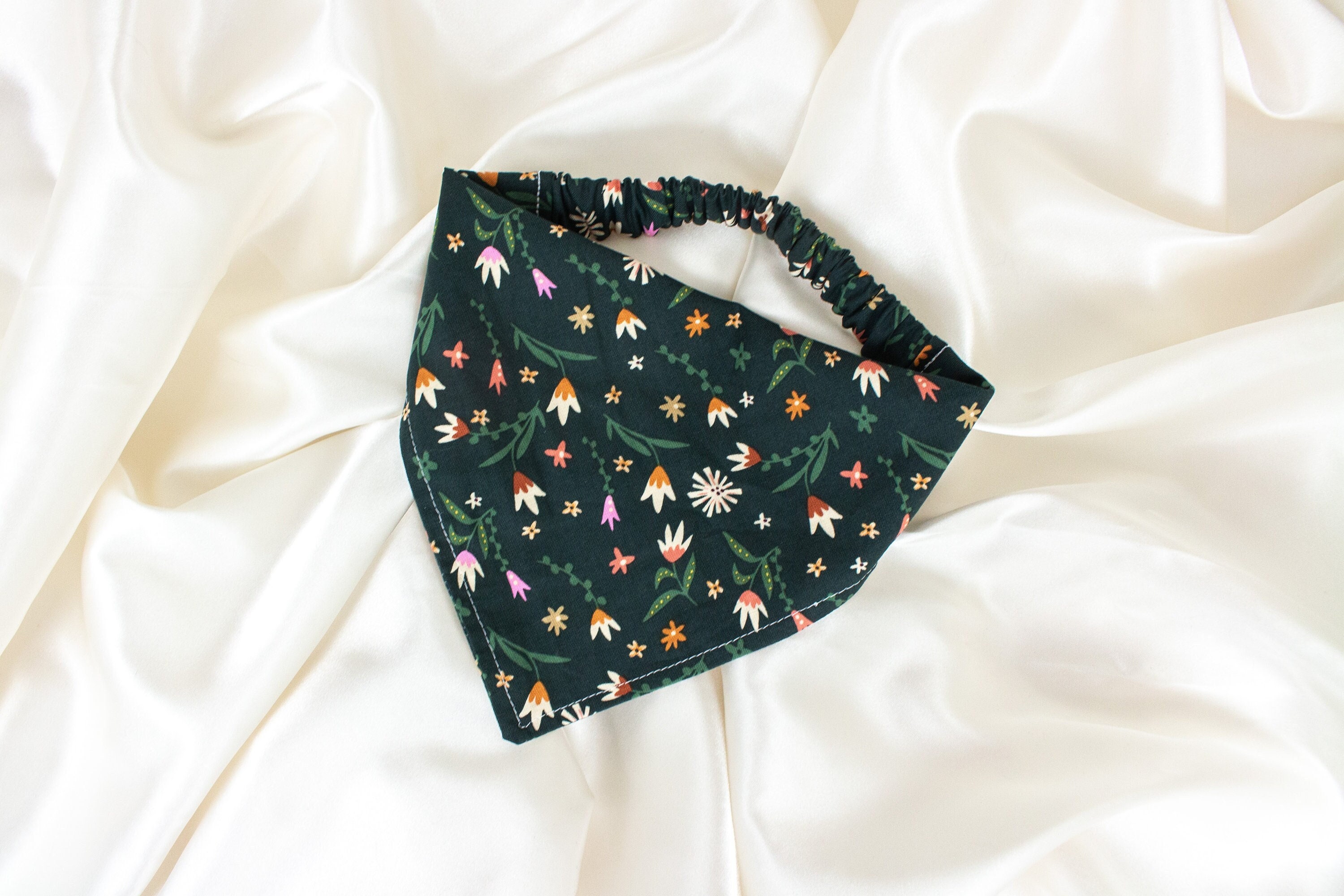 Wildflower Dog Bandana, Elegant Floral Elastic Dog Scarf, Green Pet Handkerchief, Dog Lover Gift, Pet Accessories, Flowers Dog Clothes