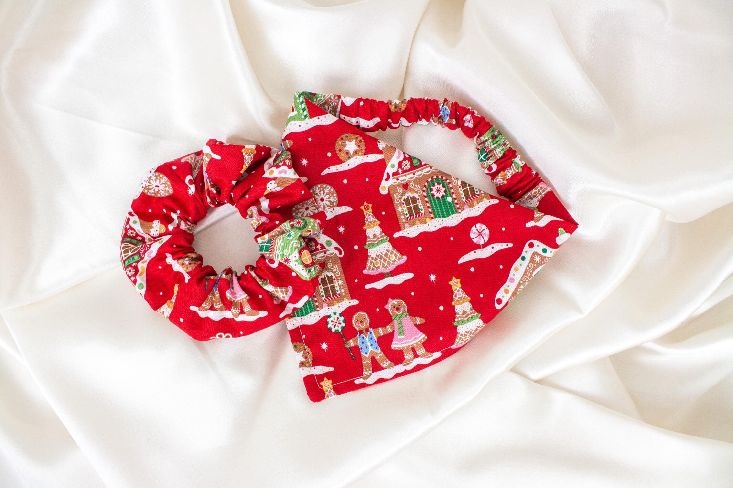 🥰This set lets you match your pet and walk around town looking cute together! This matching pet bandana and hair scrunchie are handmade from quality Christmas fabric that's red with adorable gingerbread houses, gingerbread men and women, Christmas trees, and snowflakes!