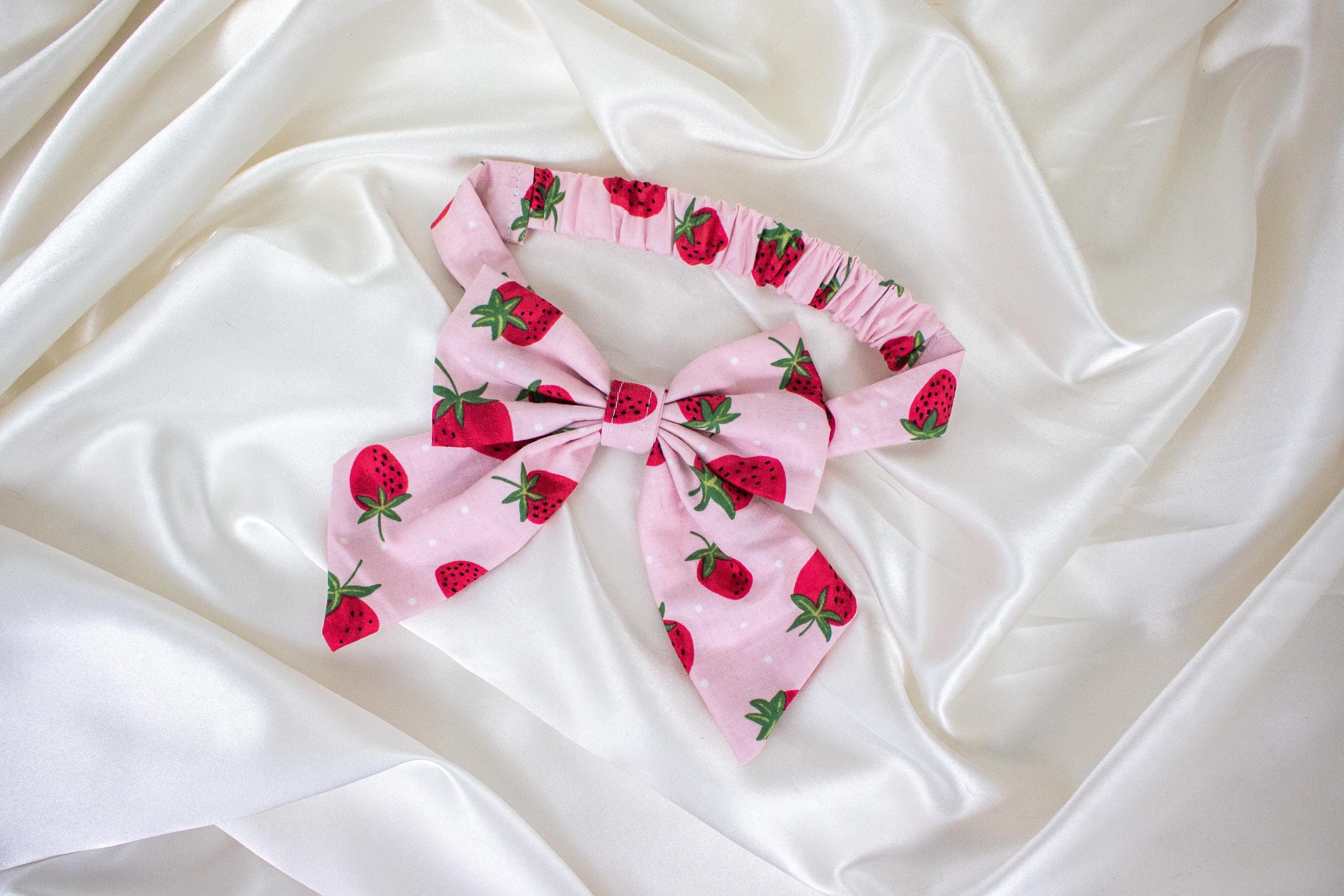 EASY ON/OFF Pink Strawberry Dog Bow, Elastic Dog Bow Tie, Sailor Dog Bows with Strawberries, Bows for Dogs, Dog Bowtie, Dog Gifts