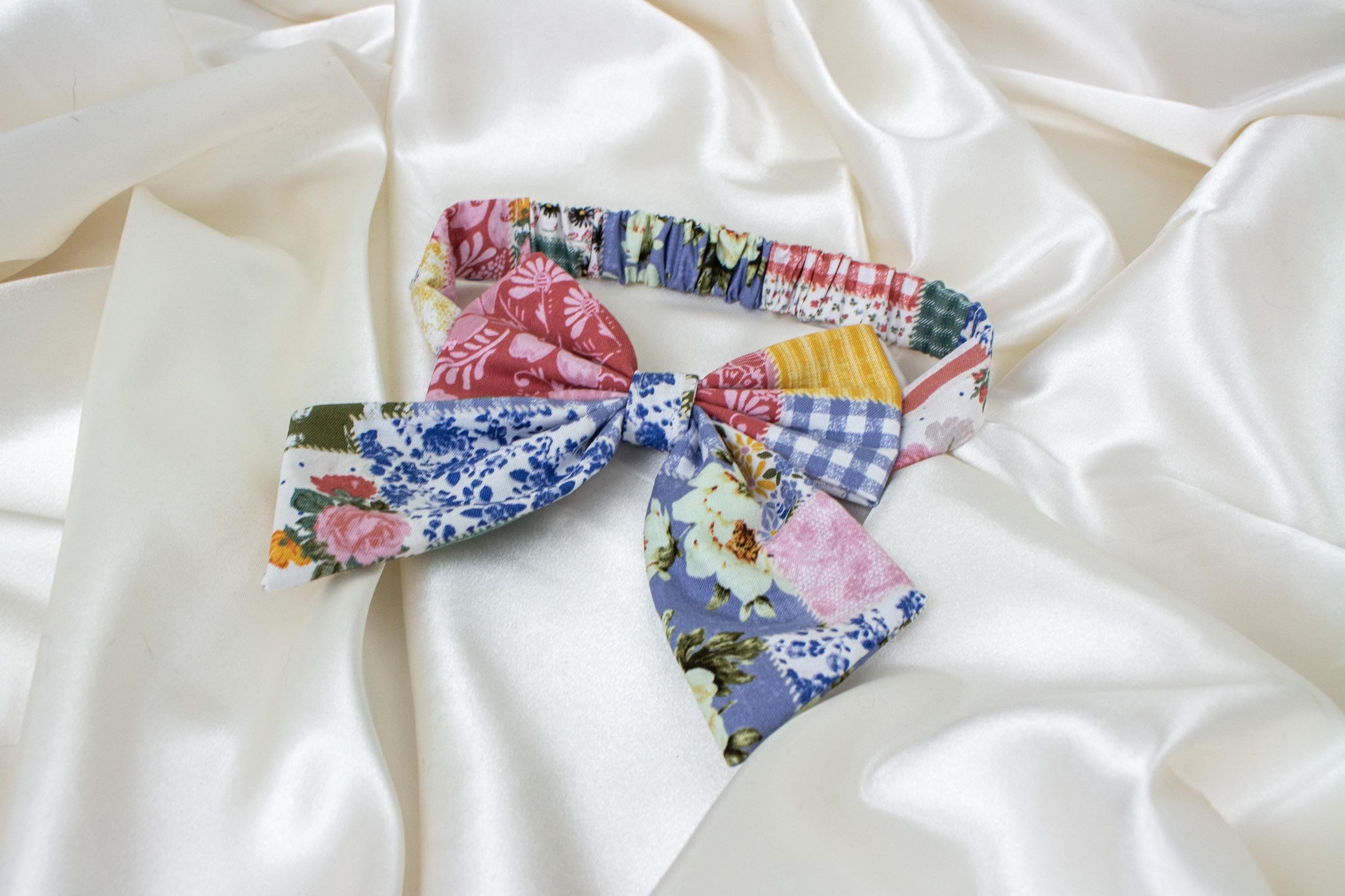 Patchwork Quilt Dog Bow or Dog Bow Tie, Floral Gingham Plaid Sailor Dog Bows, Bows for Dogs, Dog Bowtie