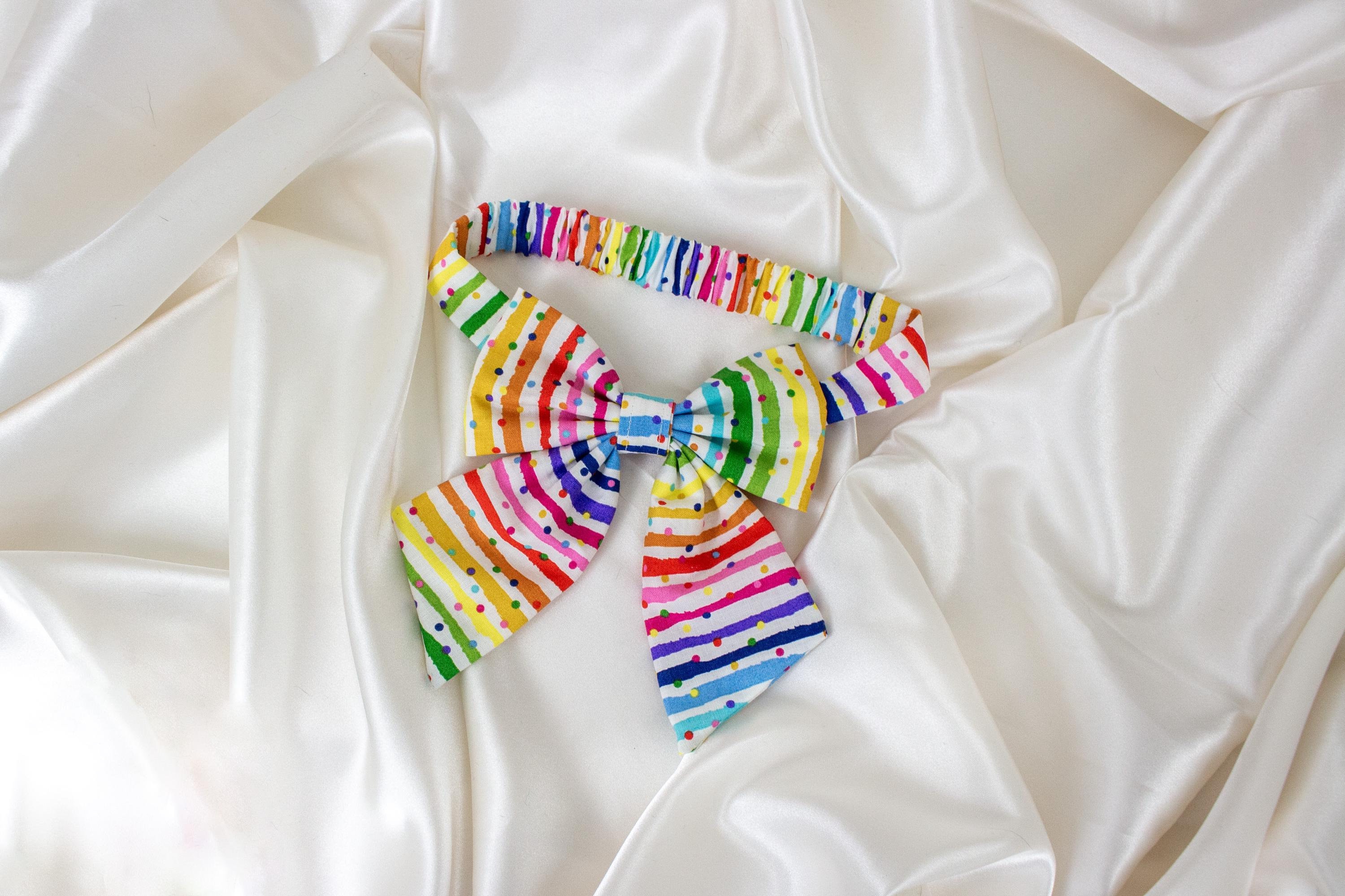 EASY SLIP ON Rainbow Birthday Dog Bow or Dog Bow Tie, 1st Birthday Dog Bows for New Puppy, Bows for Dogs, Dog Bowtie, Dog Mom Gift