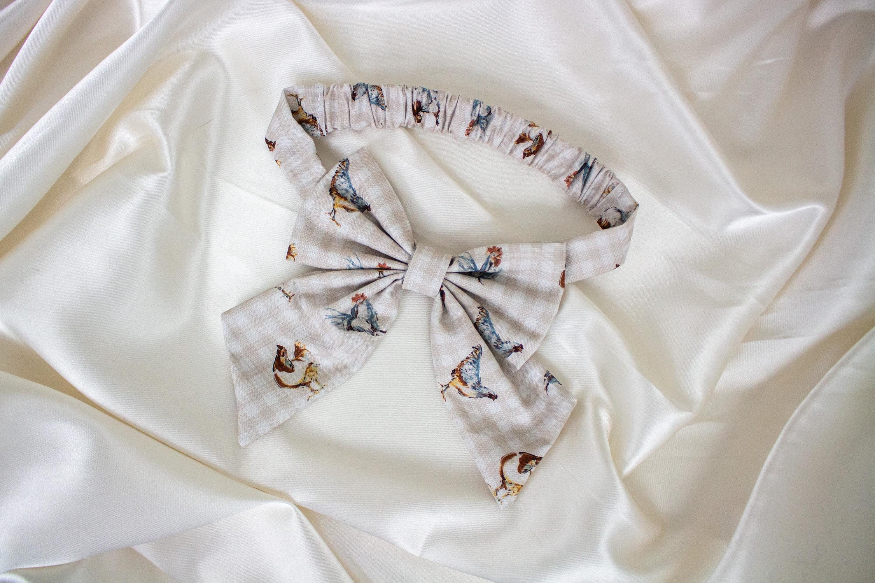 🥰And this pet bow is handmade from quality fabric with a beige gingham pattern and cute barnyard chickens!