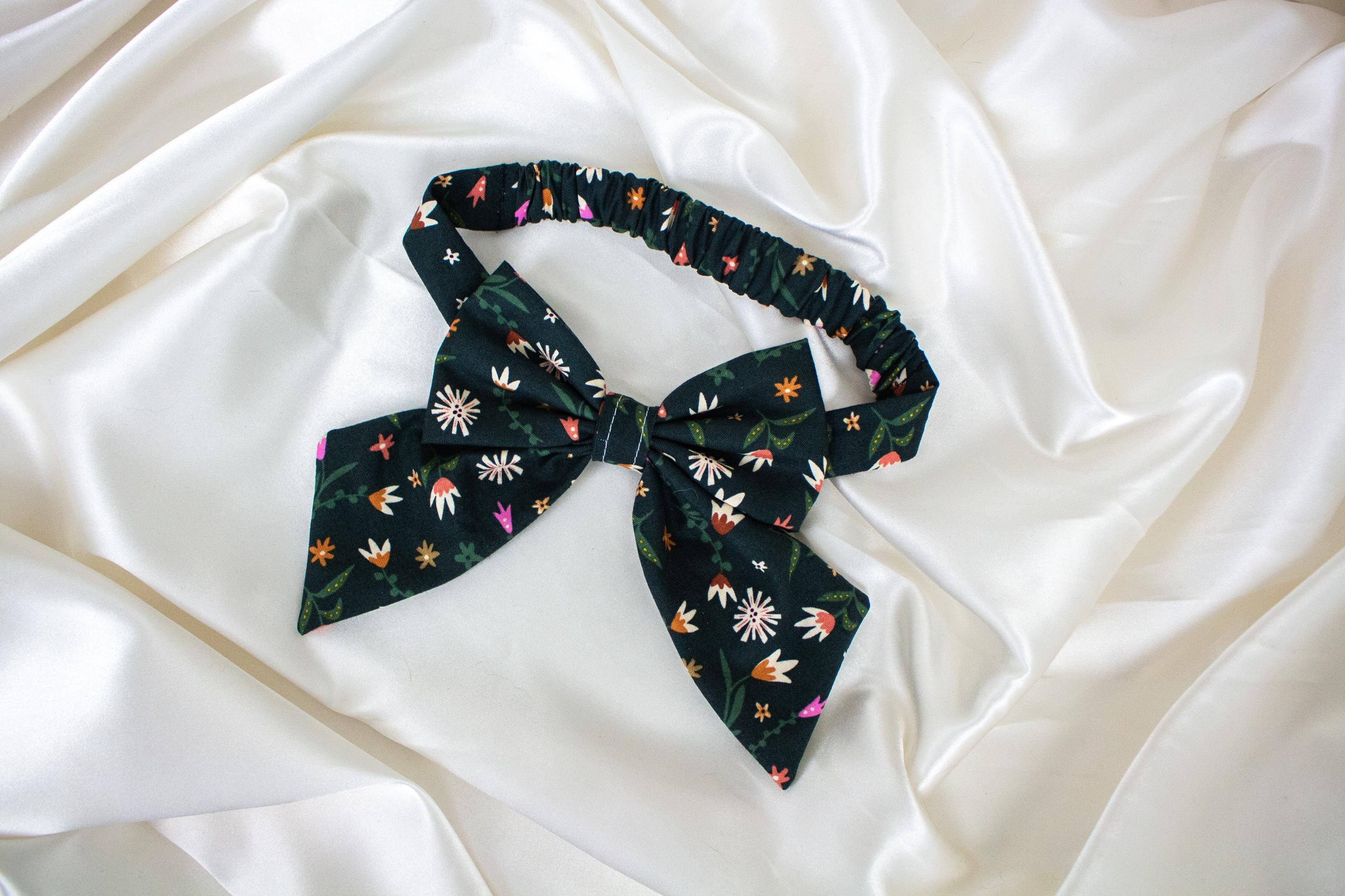 EASY SLIP ON Dog Bow or Dog Bowtie with Wildflowers, Floral, Sailor Dog Bows, Green Bows for Dogs, Dog Bow Tie, Dog Clothes