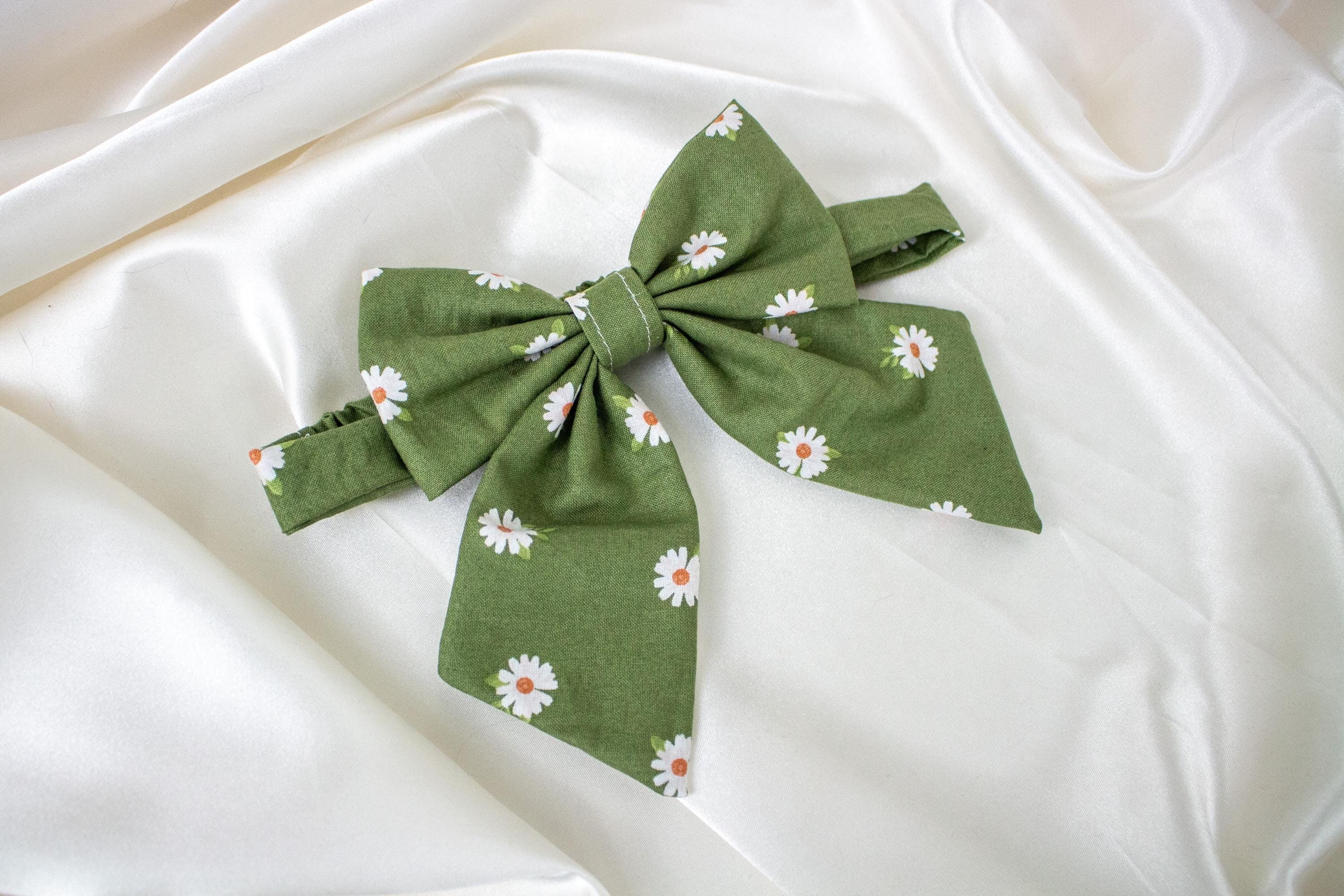 EASY SLIP ON Daisy Floral Dog Bow or Dog Bowtie, Sailor Dog Bows with Elegant Flowers, Dog Gifts, Green Dog Bow Tie, Bows for Dogs