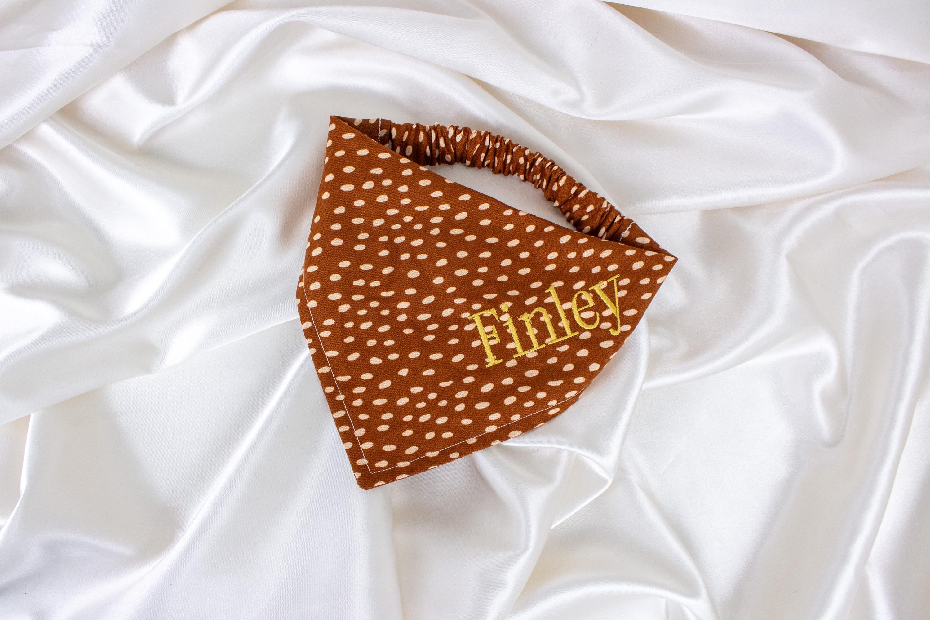 Embroidered Personalized Burnt Orange Dog Bandana with Beige Dots, Custom Dog Bandana, Custom Name Dog Scarf