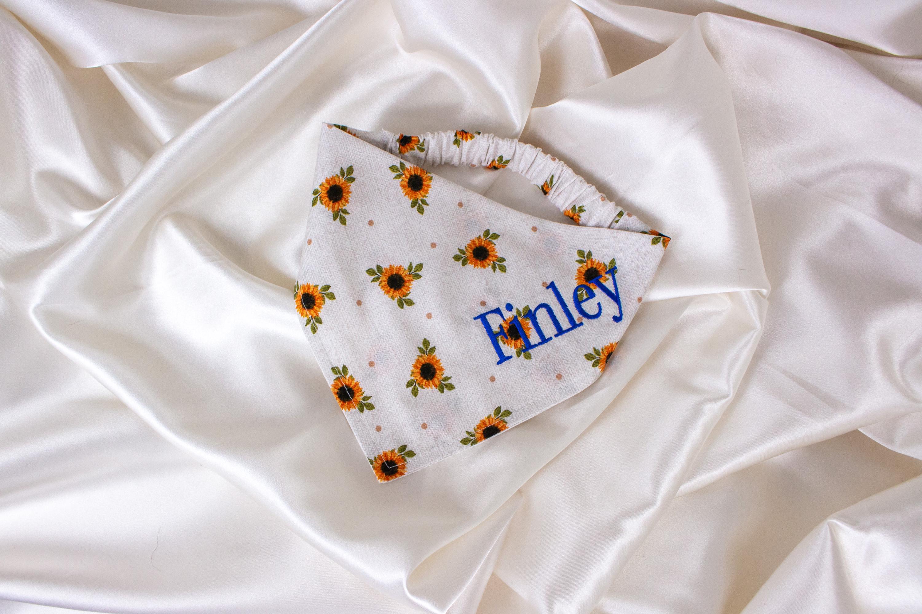 Embroidered Dog Bandana, Personalized, Beige Sunflower Dog Scarf with Custom Name, Floral Dog Gifts for Fall, Autumn