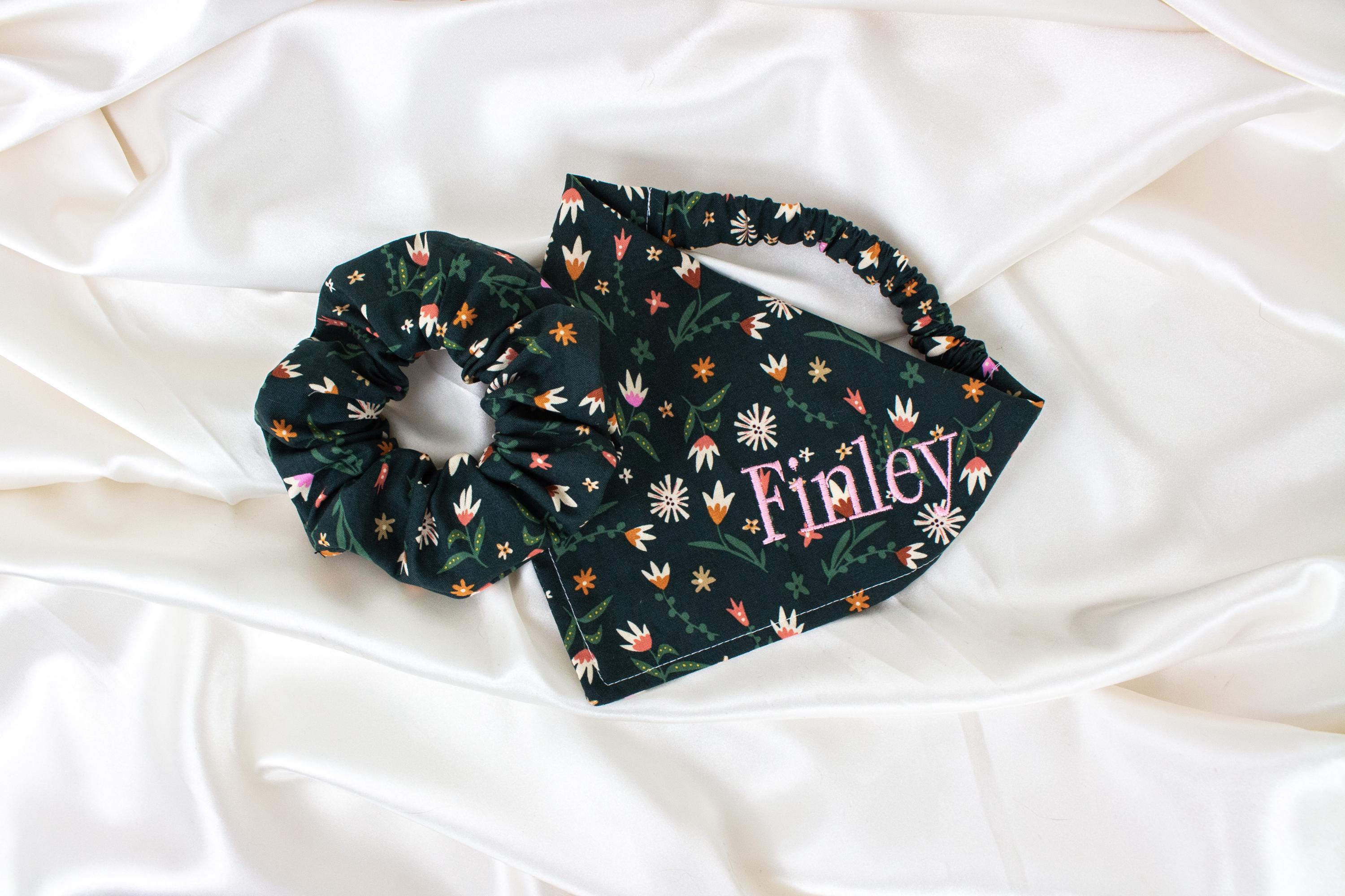 MATCH YOUR PUP! Personalized Wildflower Dog Bandana and Hair Scrunchie Set, Embroidered, Floral, Pet and Owner Pack, Custom Dog Bandana Pack