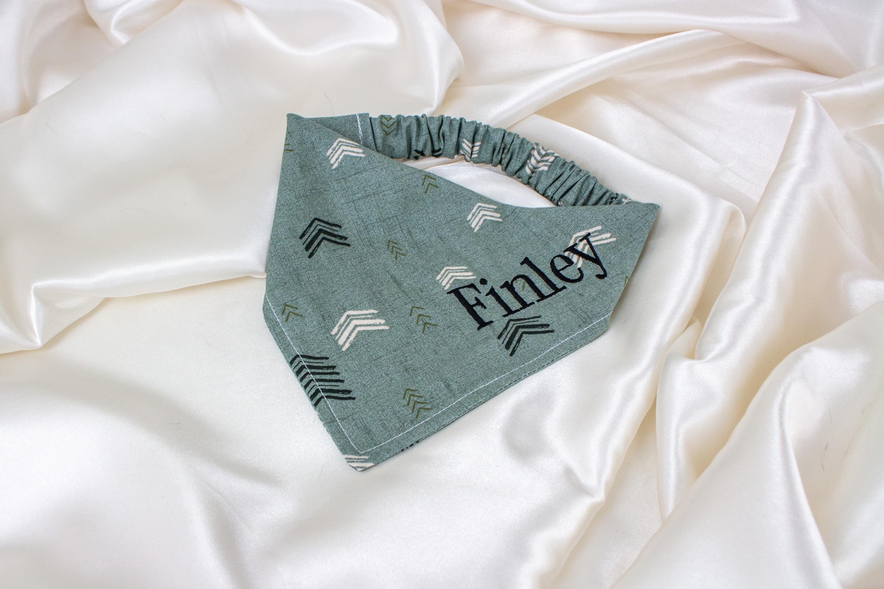 PERSONALIZED Boho Chevron Dog Bandana, Embroidered, Dog Scarf with Custom Name, Green, Boho Dog Clothes, Dog Mom Gift