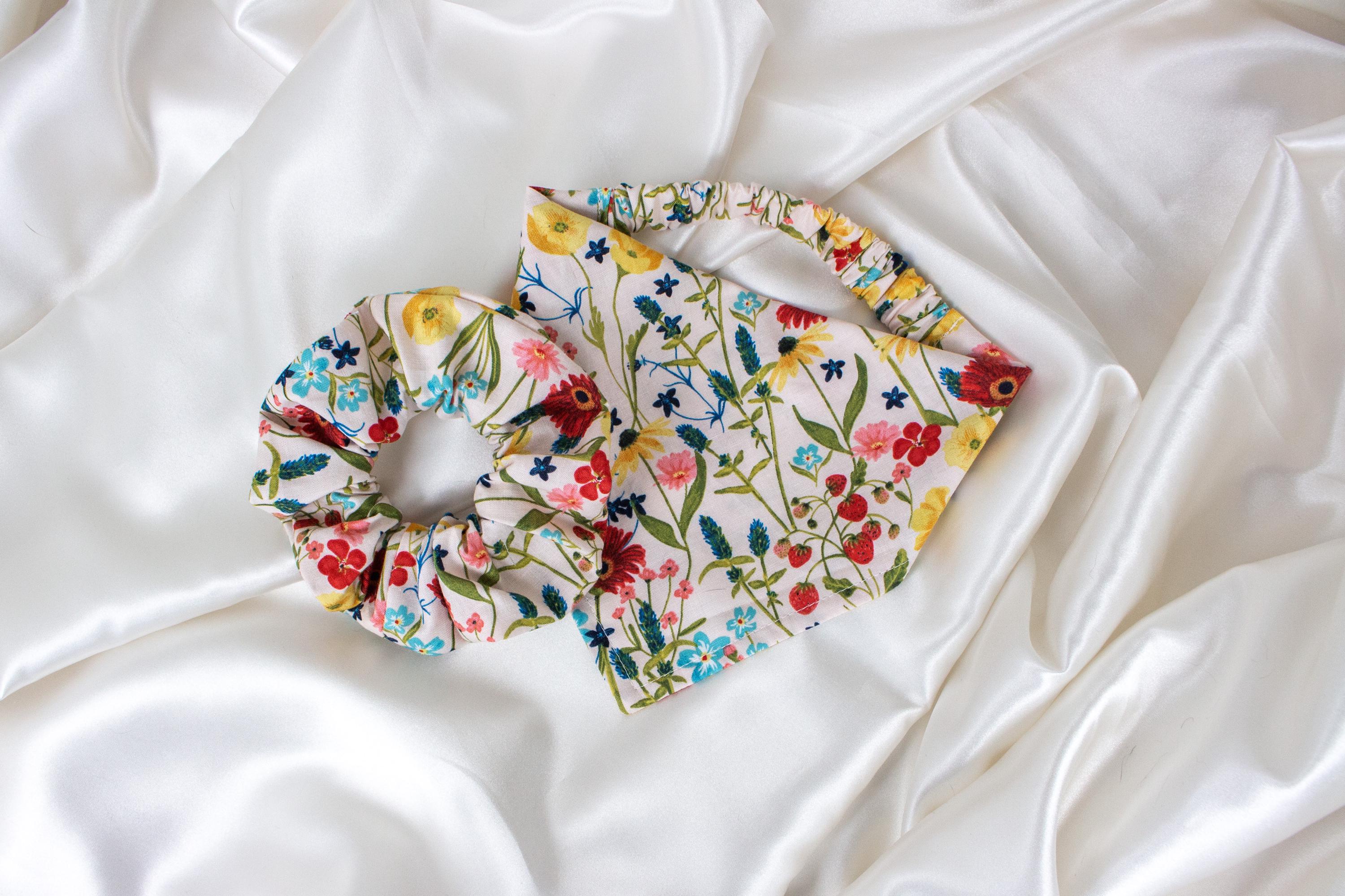 🥰This set lets you match your pet and walk around town looking cute together! This matching pet bandana and hair scrunchie are handmade from quality beige fabric with a beautiful floral pattern of flowers and strawberries! A perfect vibe for spring or summer fun!