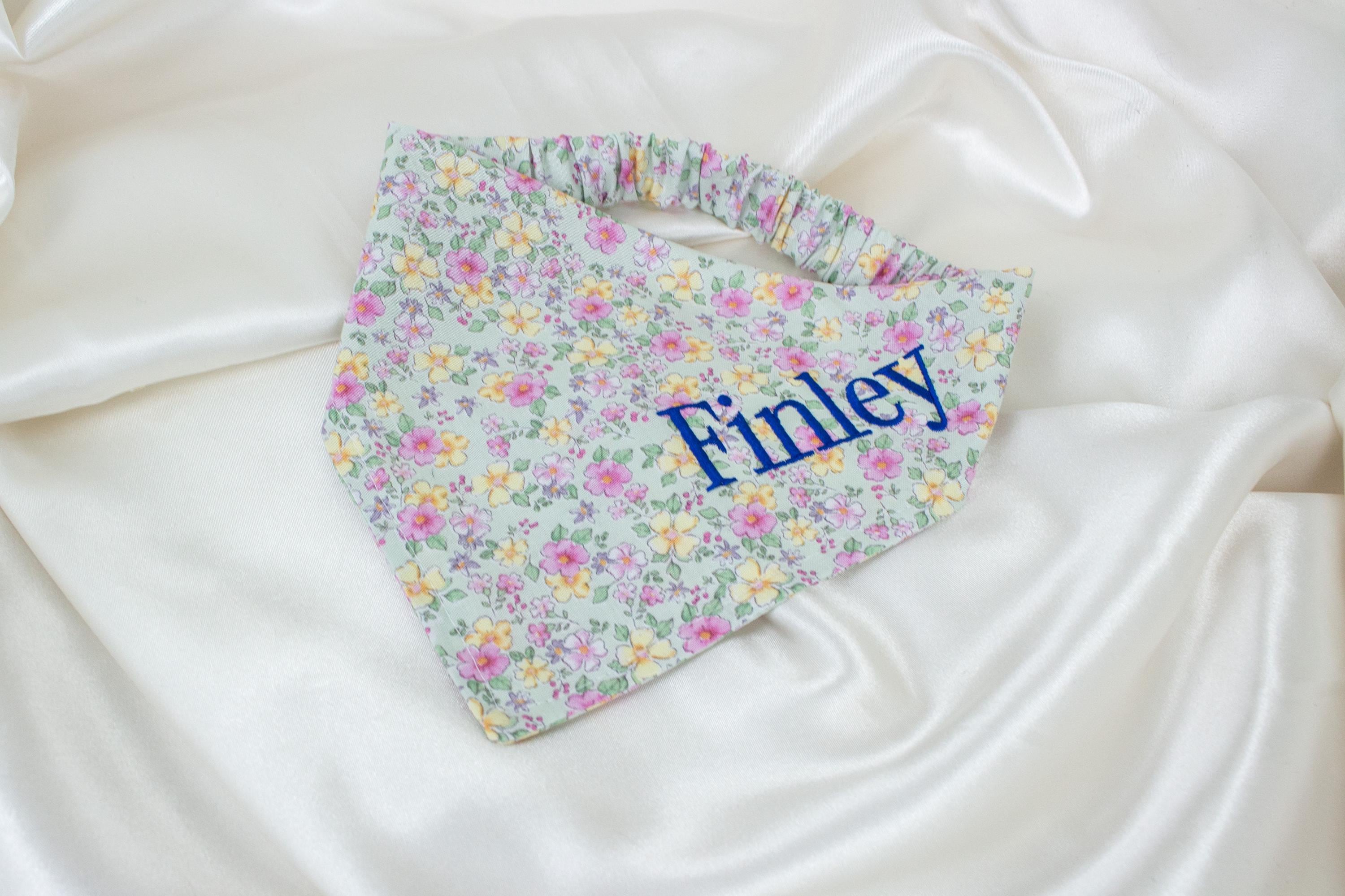Embroidered Sage Floral Dog Bandana, Personalized Dog Gifts, Custom Dog Scarf, Pet Handkerchief with Pastel Flowers