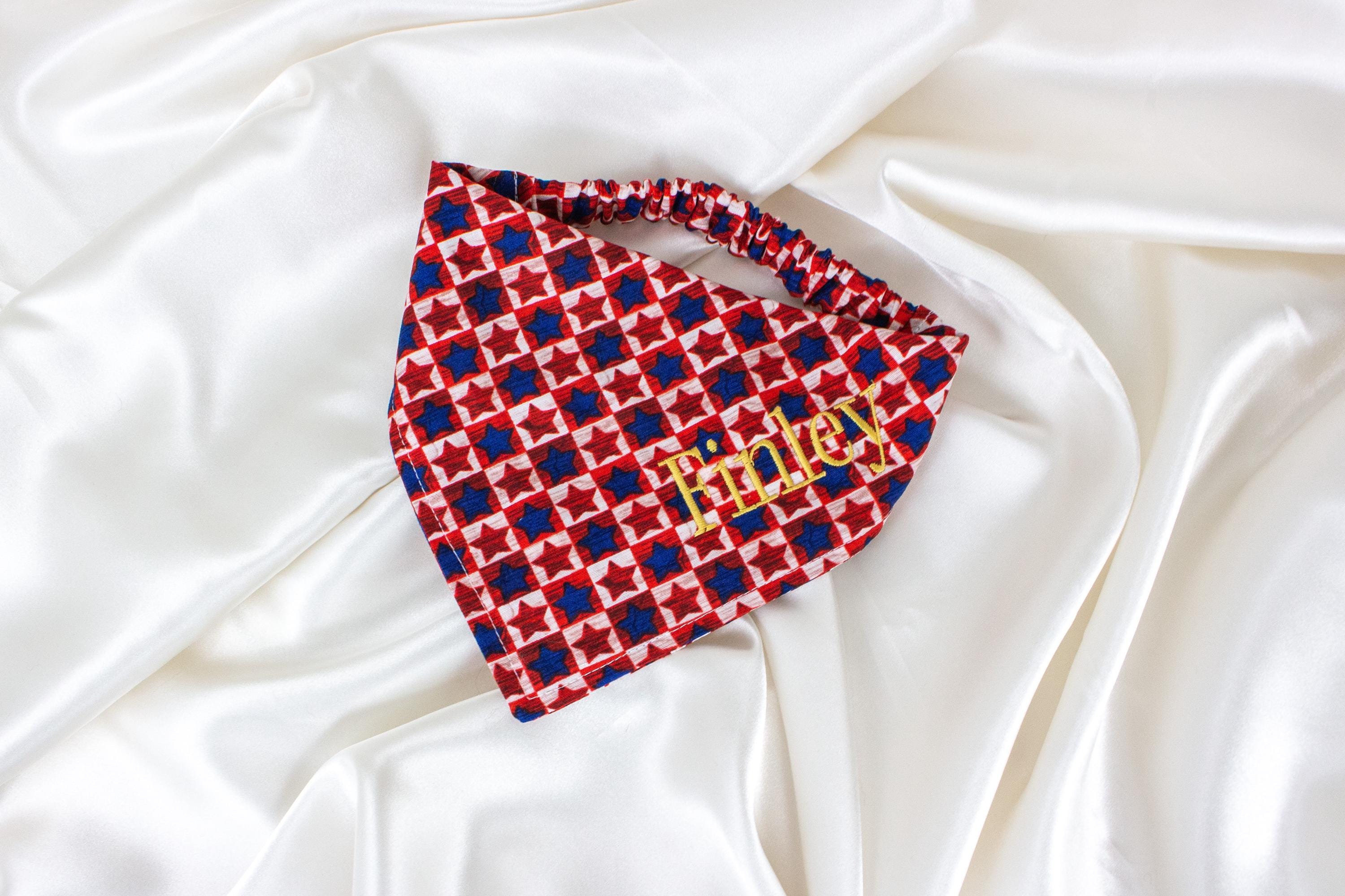 Embroidered Rustic Patriotic Dog Bandana with CUSTOM NAME, Personalized, Checkered Dog Scarf with Stars, 4th of July Dog Gifts