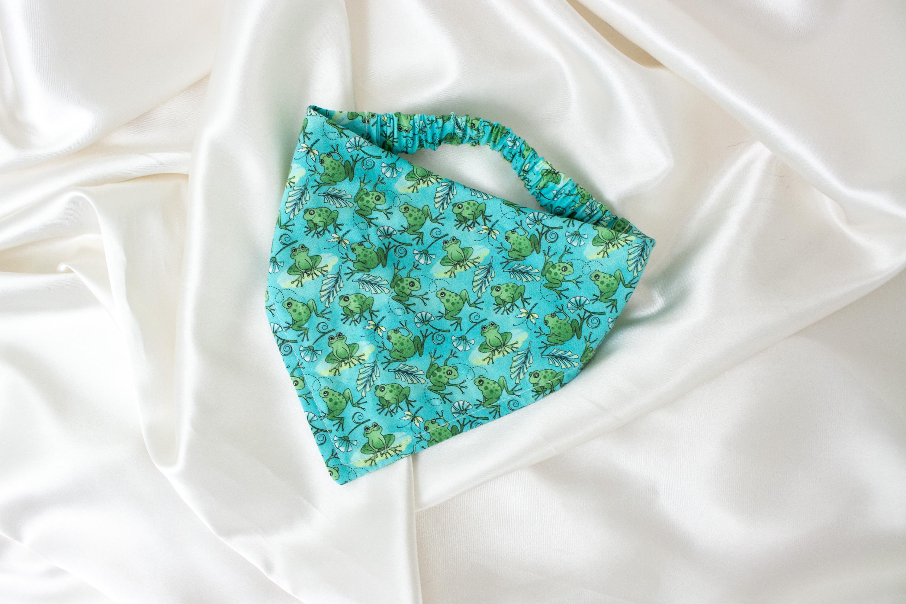 🥰This pet bandana is handmade from quality turquoise fabric with cute frogs and dragonflies that give a chill vibe! It features an elastic strap to make it easier to get on and off your pet!