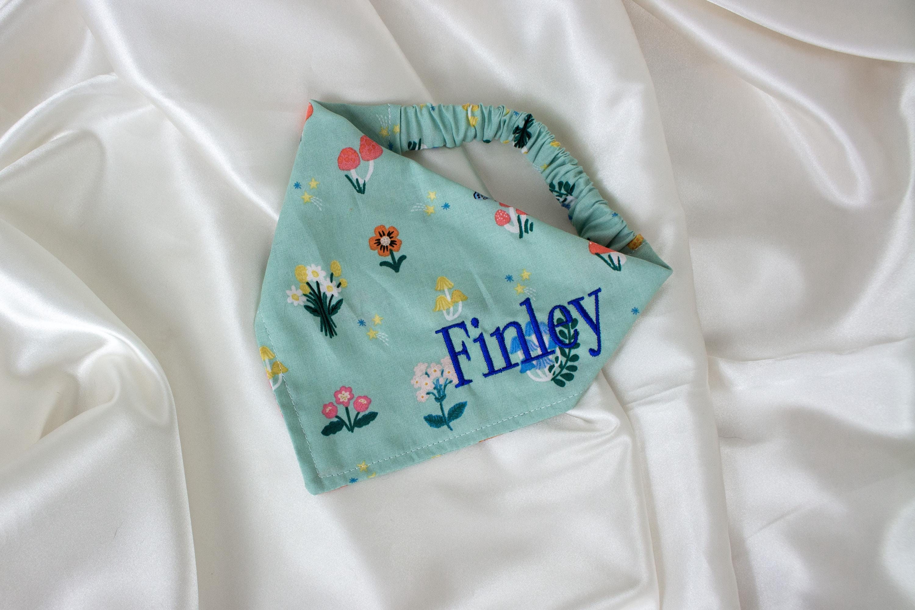 Sage Green Floral Embroidered Dog Bandana, Spring, Custom Name Dog Scarf, Personalized, Dog Gifts