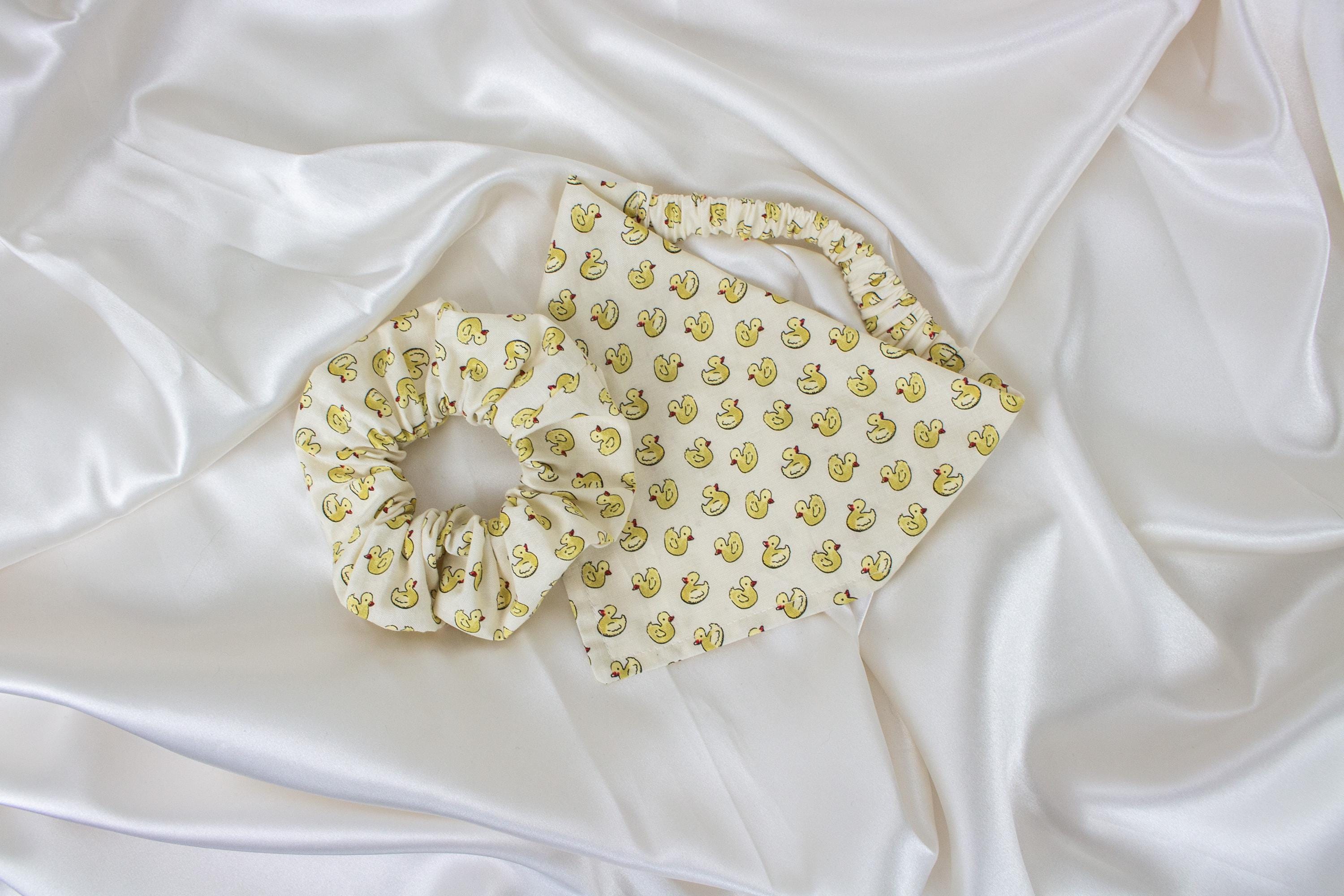 Matching Rubber Ducky Dog Bandana and Hair Scrunchie Set, Beige Rubber Duck Dog Scarf and Scrunchy, Pet and Owner Pack, Pet Handkerchief