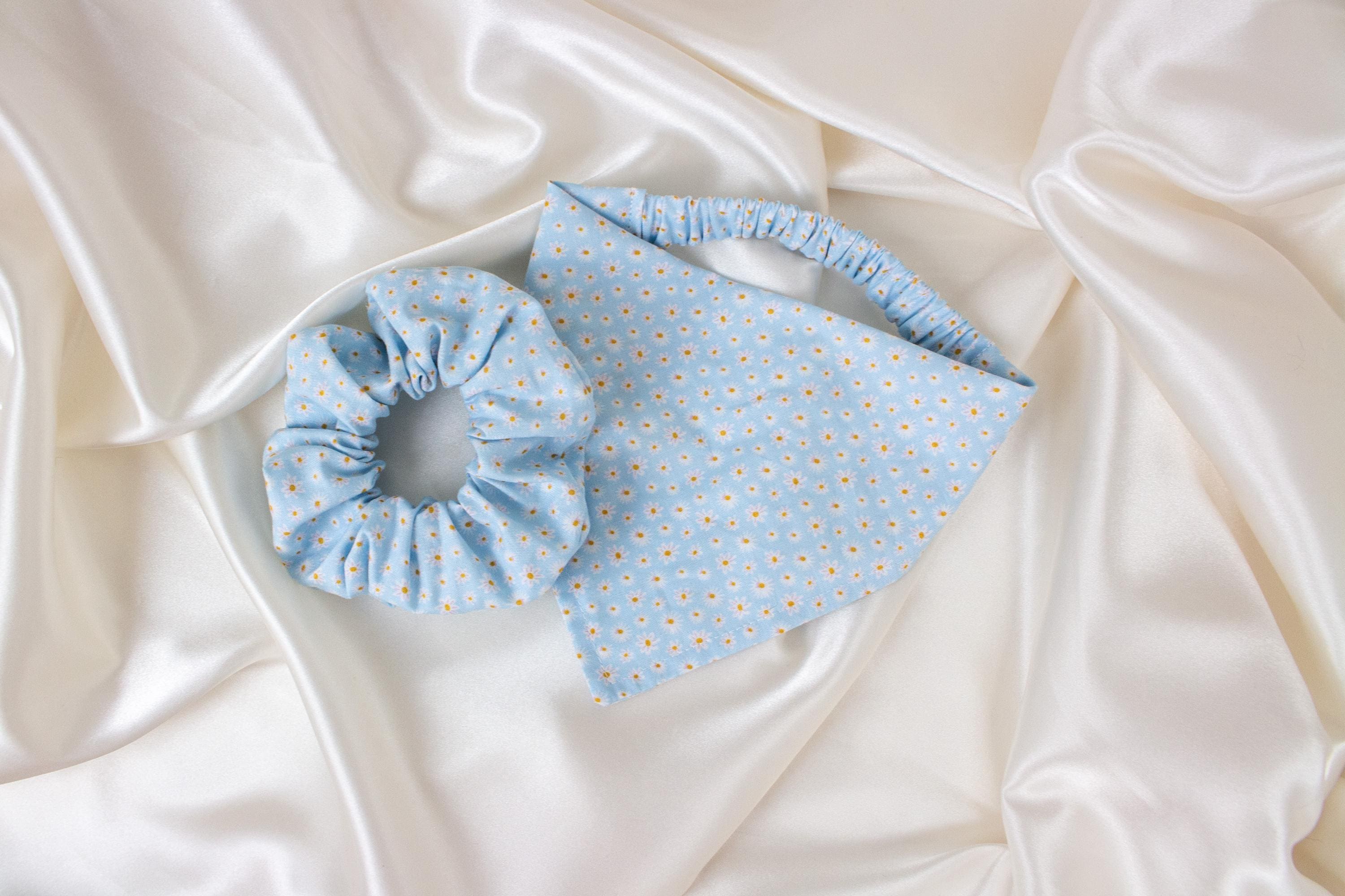 Matching Daisy Dog Bandana and Hair Scrunchie Set, Pastel Blue Dog Scarf and Scrunchy Pet and Owner Set, Dog Gifts, Floral Pet Handkerchief