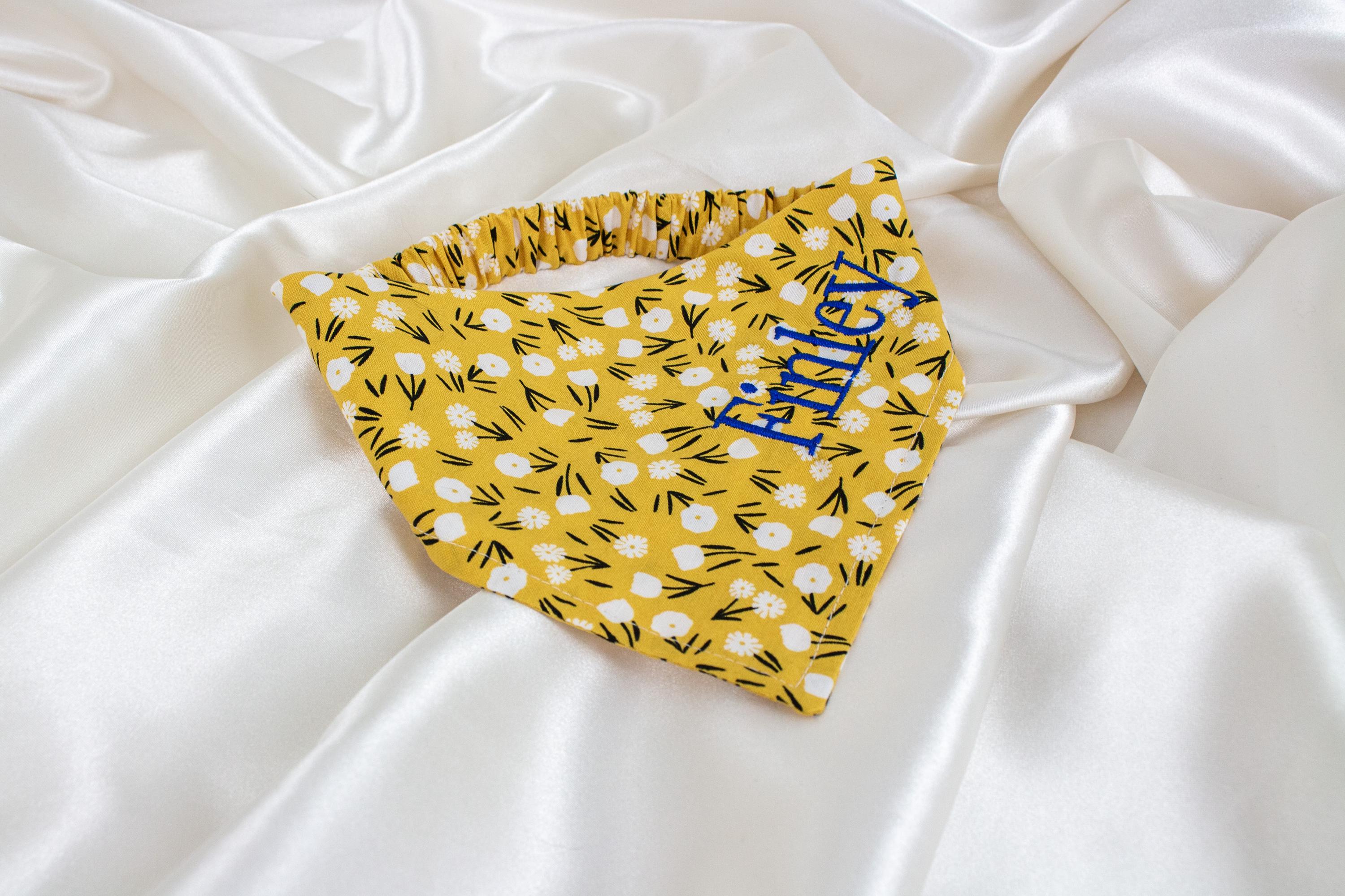 Custom Dog Bandana, Personalized, Embroidered, Mustard Floral Dog Scarf, Pet Handkerchief, Dog Gifts