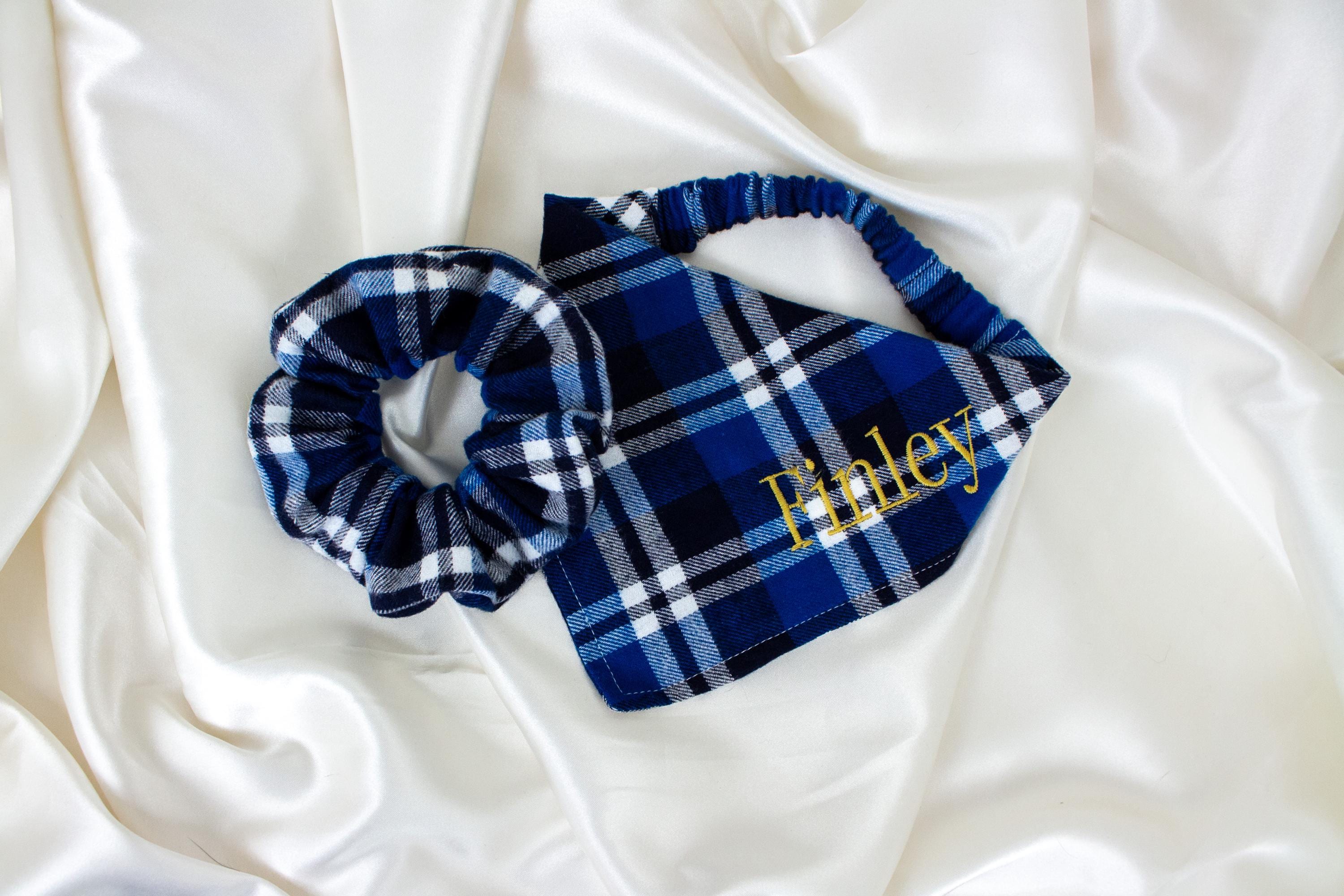 MATCHING Personalized Tartan Flannel Dog Bandana and Hair Scrunchie Set, Embroidered, Plaid Fall Dog Scarf Scrunchy, Fall Dog Bandana