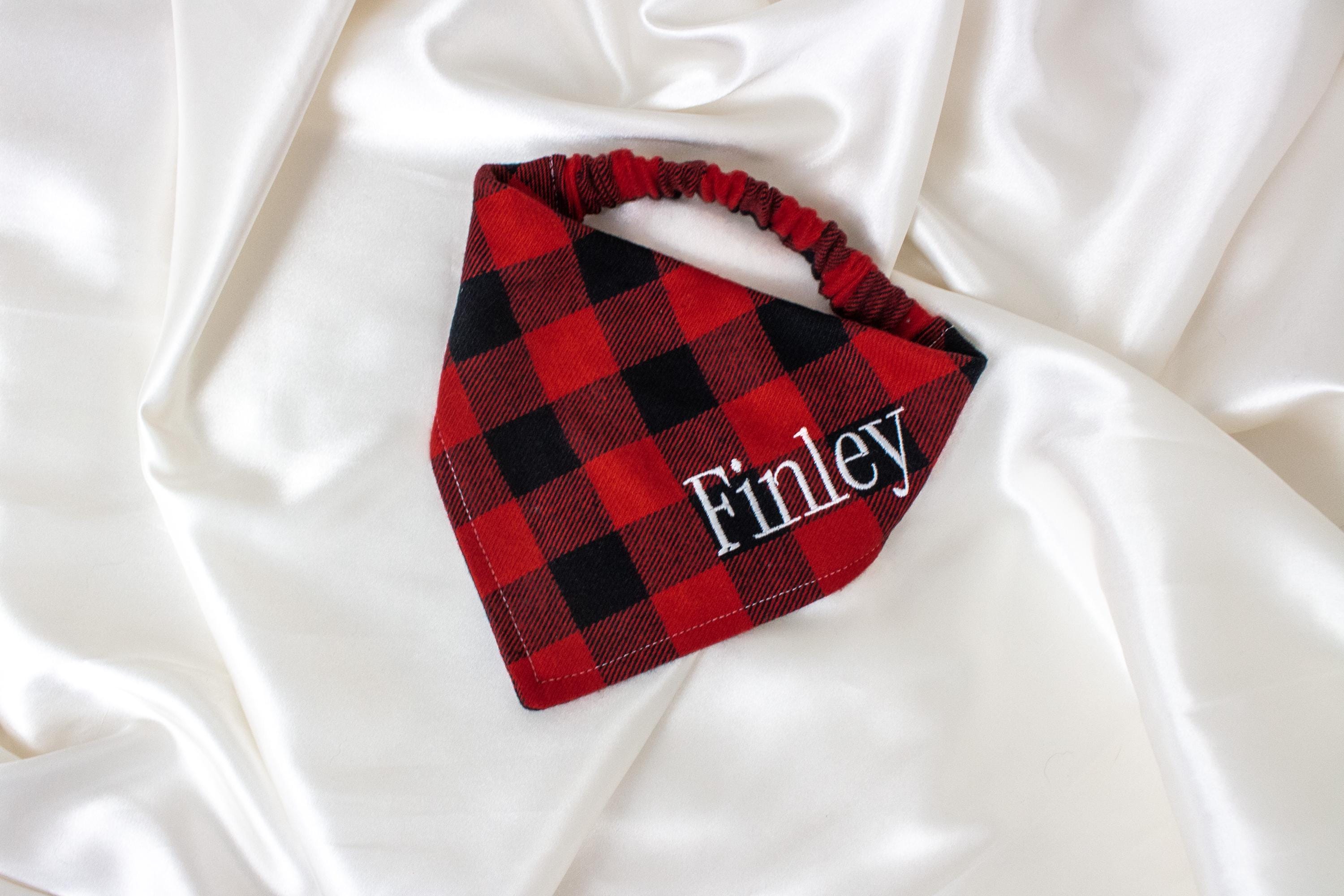 Personalized Flannel Dog Bandana, Embroidered Buffalo Plaid Dog Scarf, Dog Mom Gift, Pet Handkerchief for Autumn, Custom Fall Dog Bandana