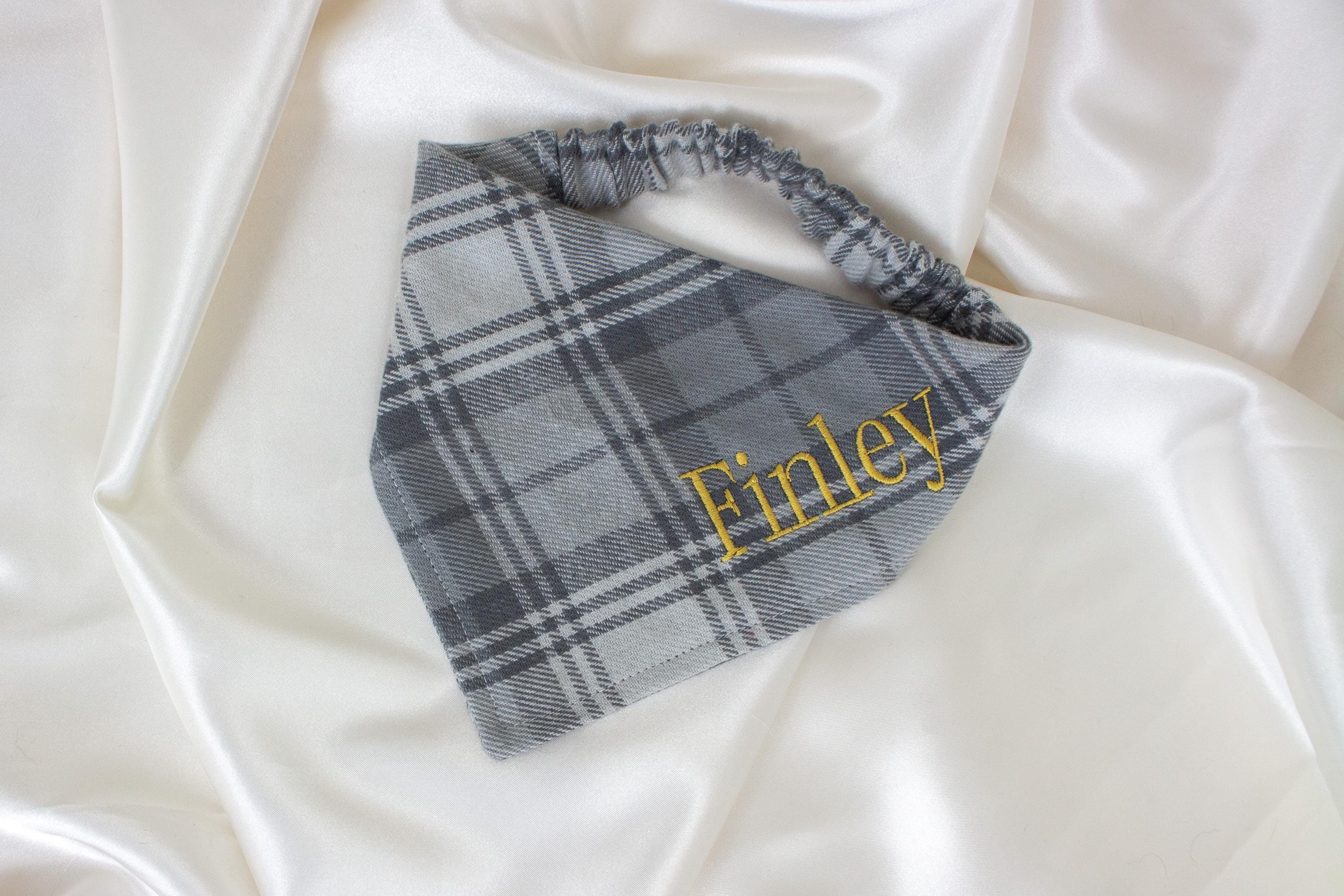 Personalized Grey Flannel Dog Bandana, Embroidered, Autumn Plaid Dog Scarf, Fall Dog Bandana, Pet Handkerchief, Dog Mom Gift