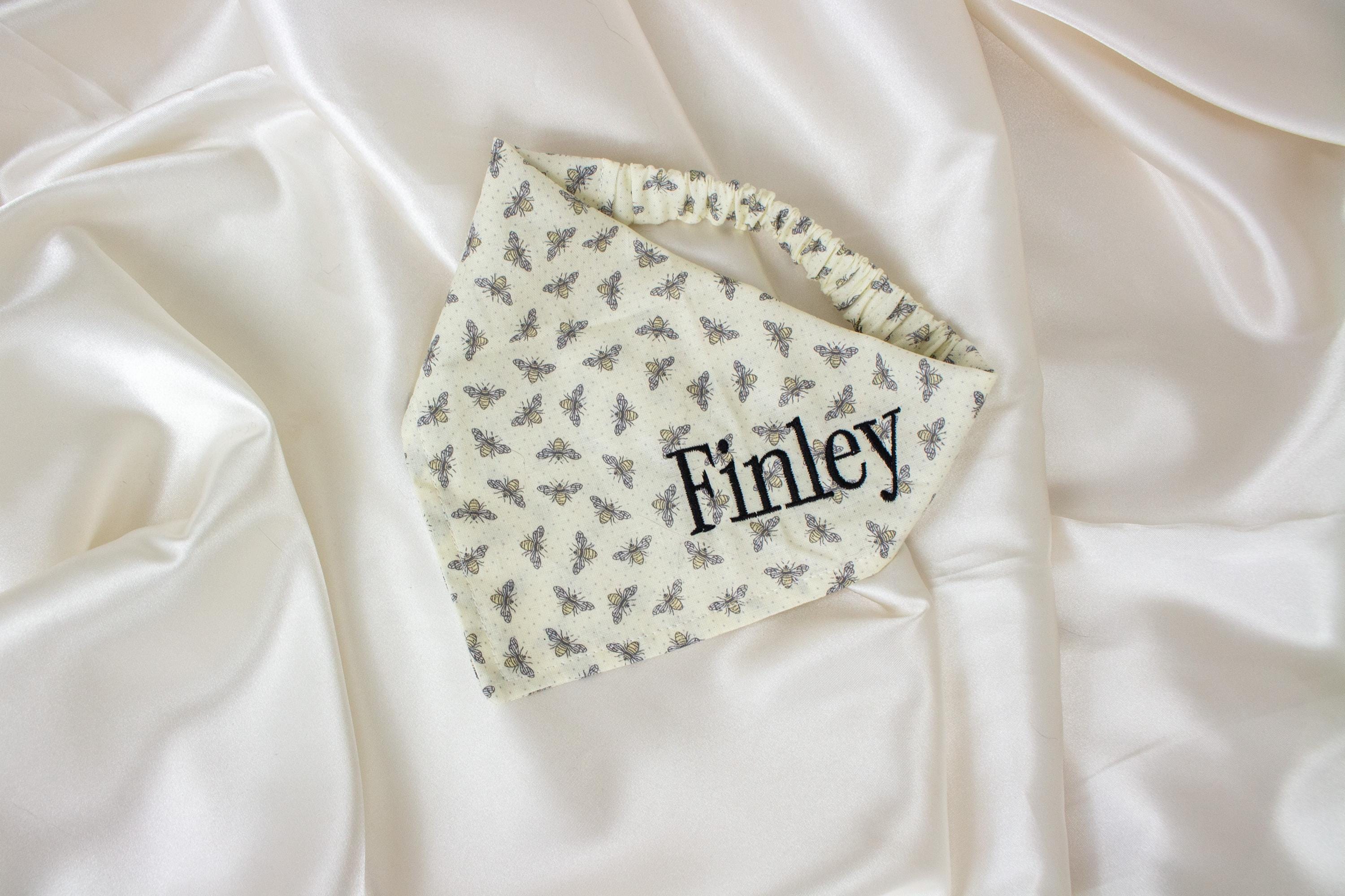 Personalized Cream Bee Dog Bandana, Custom Name Dog Bandana, Beige Embroidered Dog Scarf, Pet Handkerchief, Dog Gifts