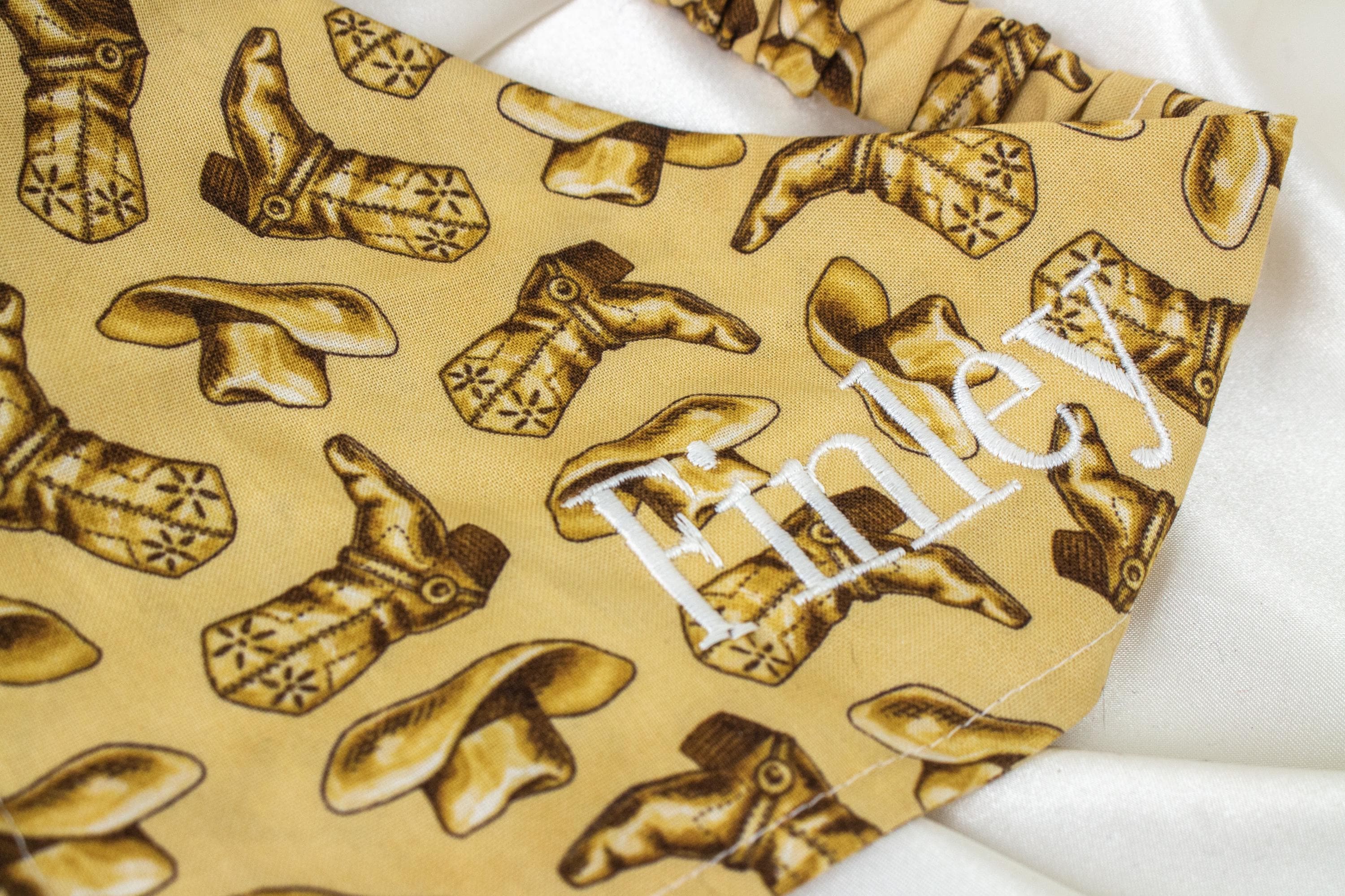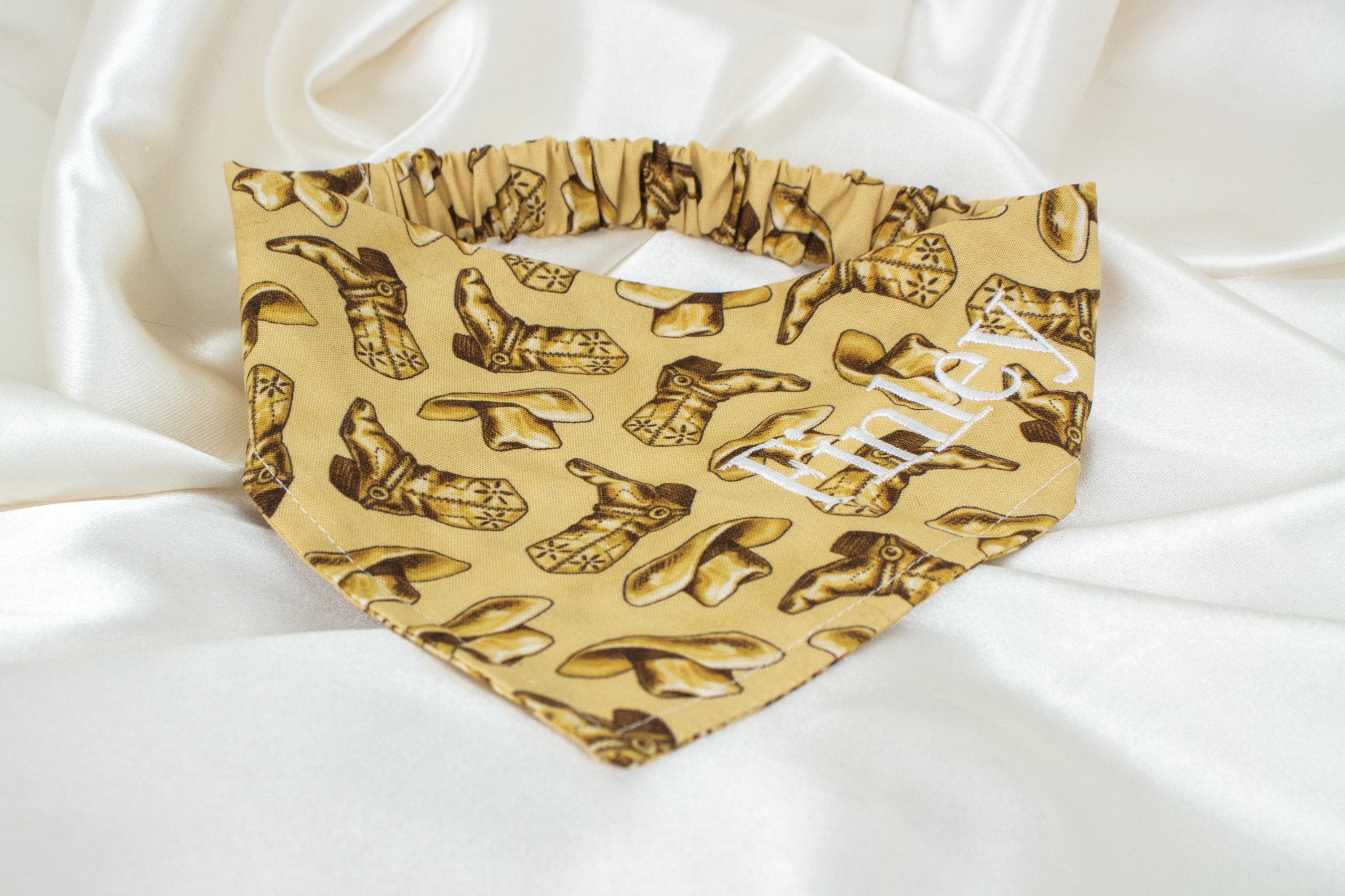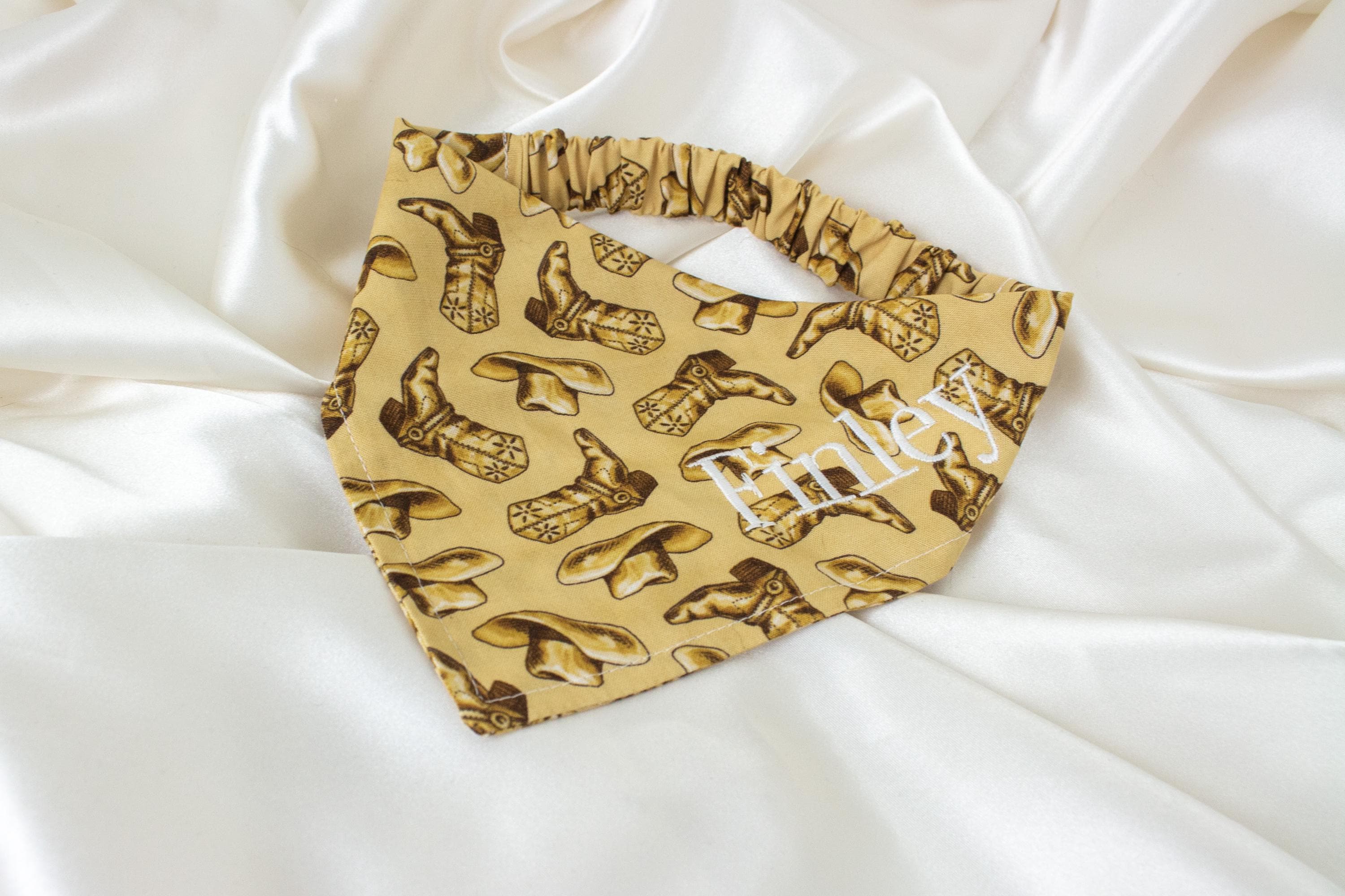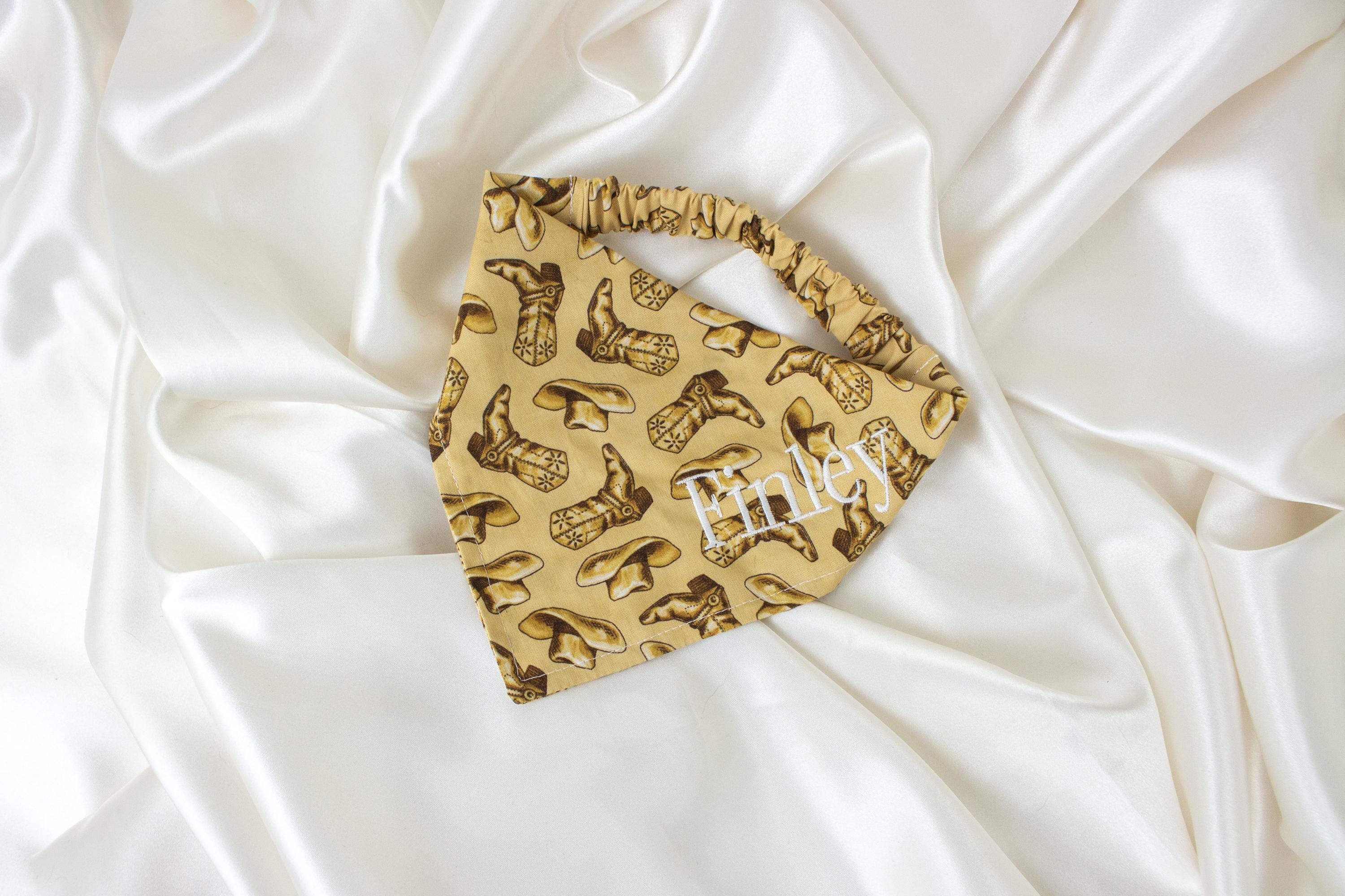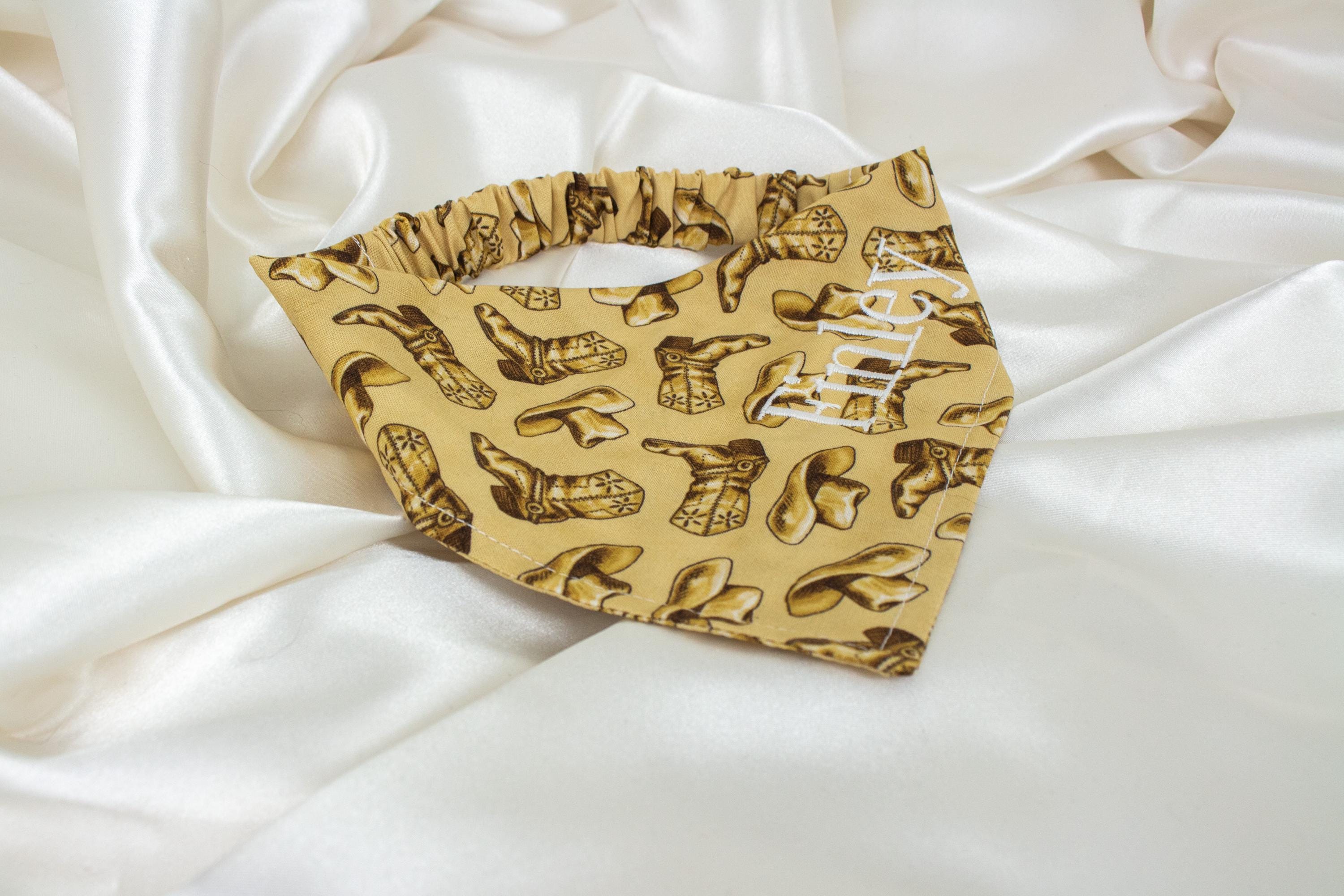🥰This pet bandana is handmade from quality beige fabric with a beautiful pattern including cowboy boots and cowboy hats! It features an elastic strap to make it easier to get on and off your pet! Pretty stylish, huh?