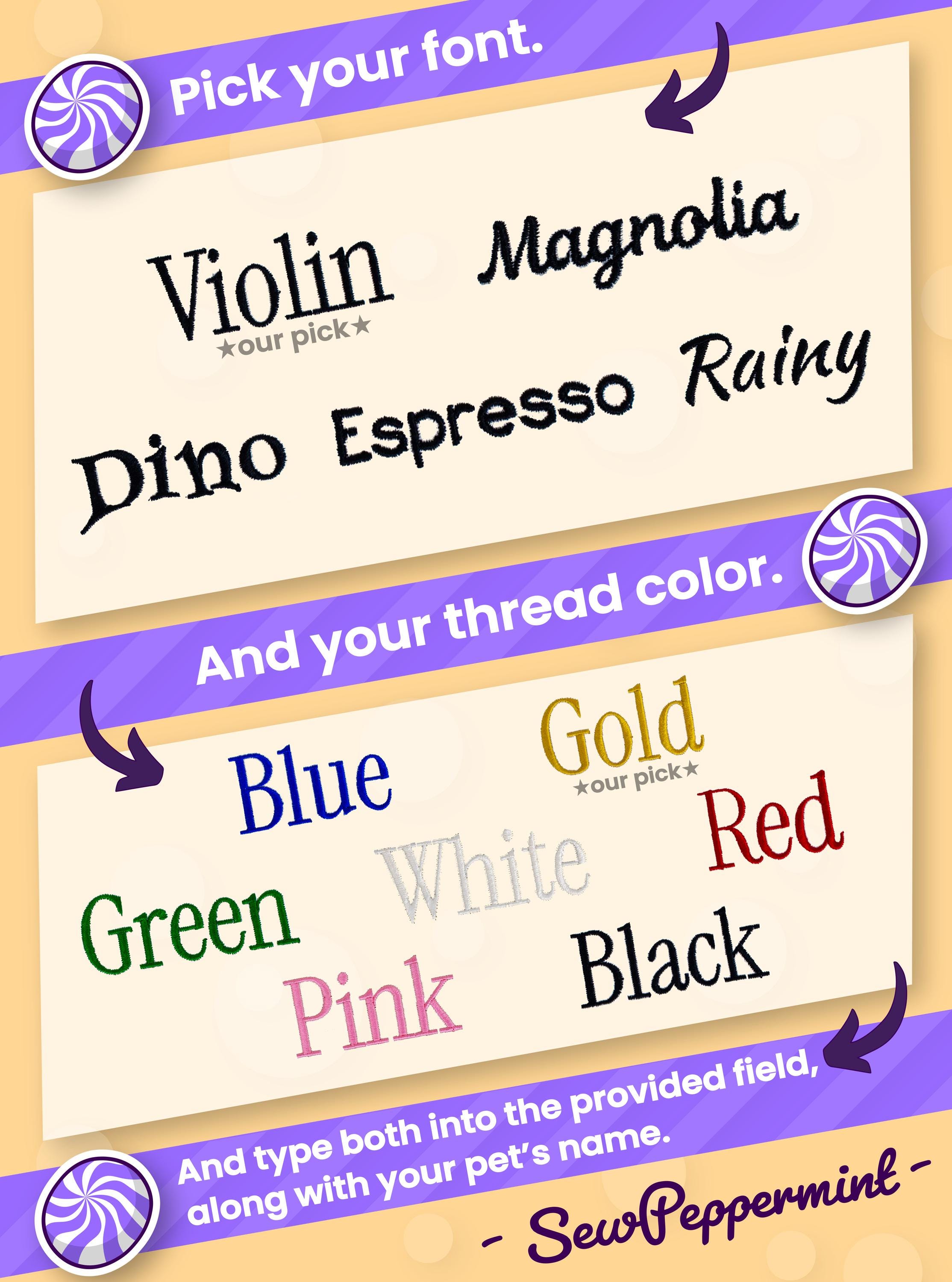 😎And, speaking of style, this set's pet bandana has the option of being personalized with a beautiful embroidered design, meaning that you can make it exceptionally, uniquely your pet's, with your pet's own name embroidered on the bandana's fabric!