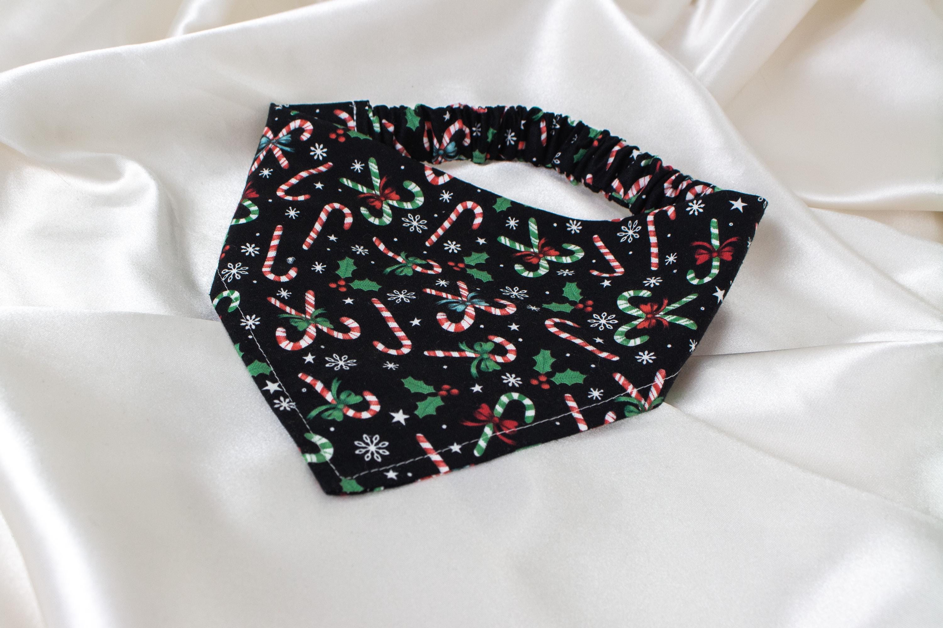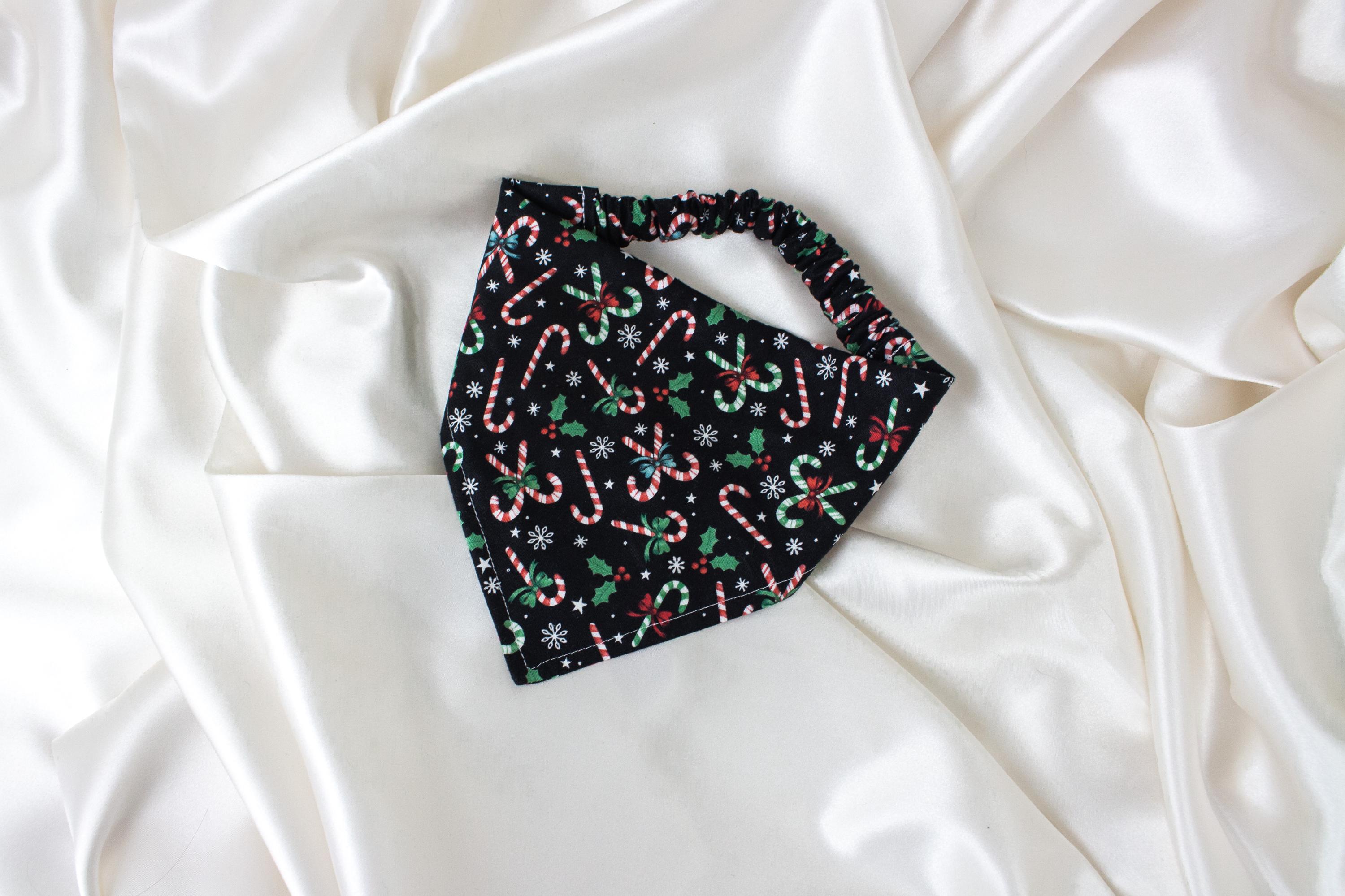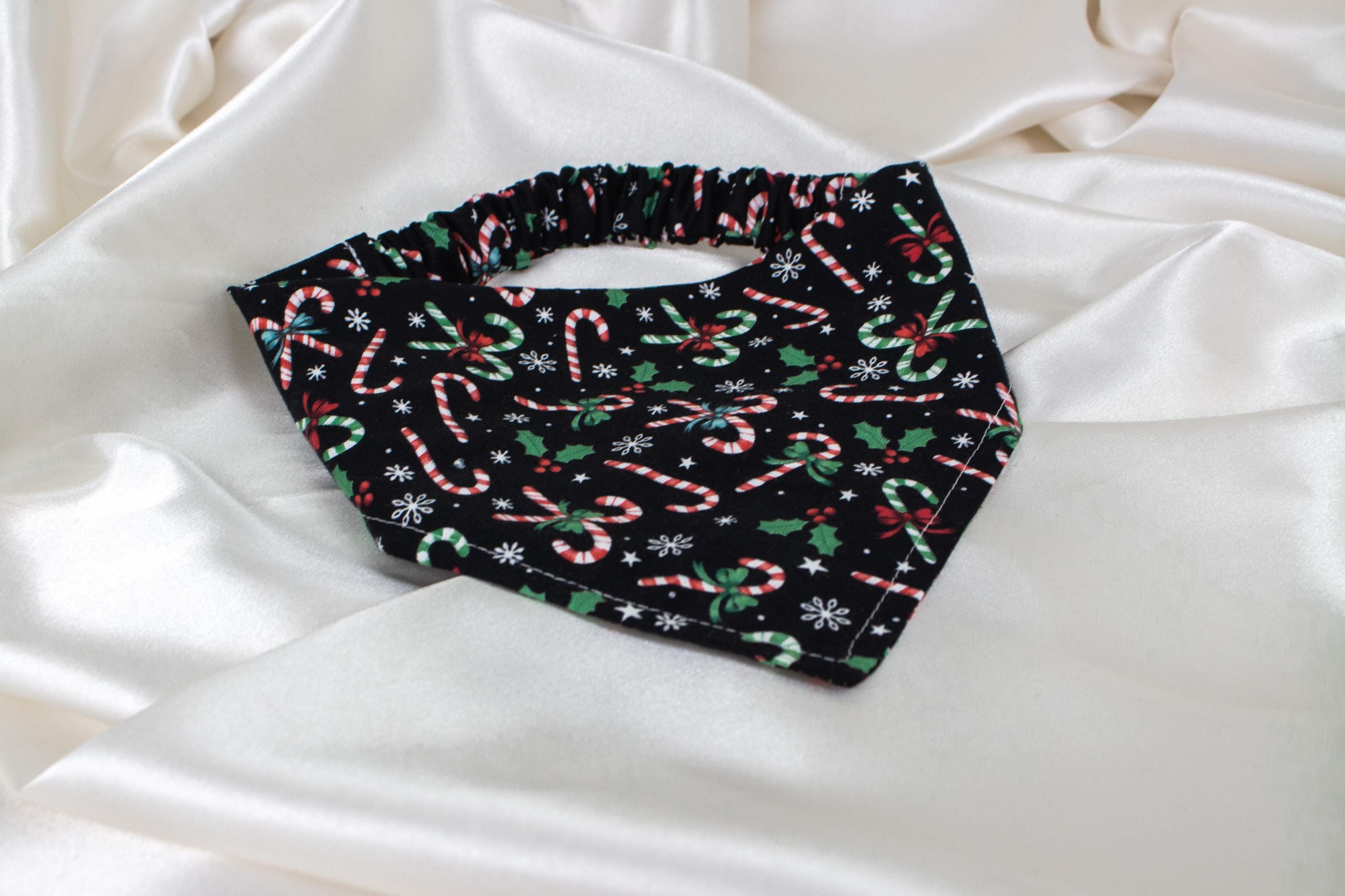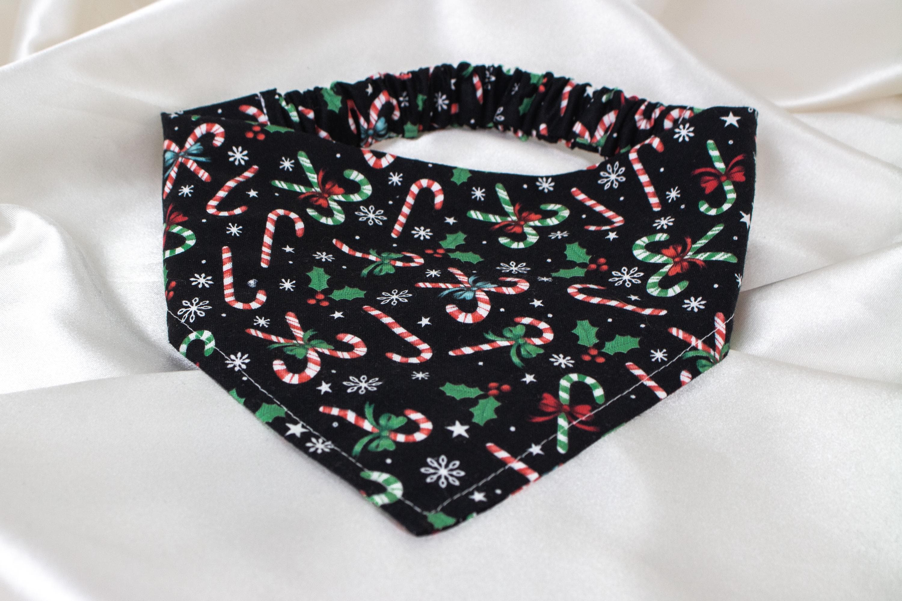 🥰This pet bandana is handmade from quality black fabric with a cute, cozy design of winter snowflakes, candy canes, and festive, Christmas holly, perfect for the holidays! It features an elastic strap to make it easier to get on and off your pet!
